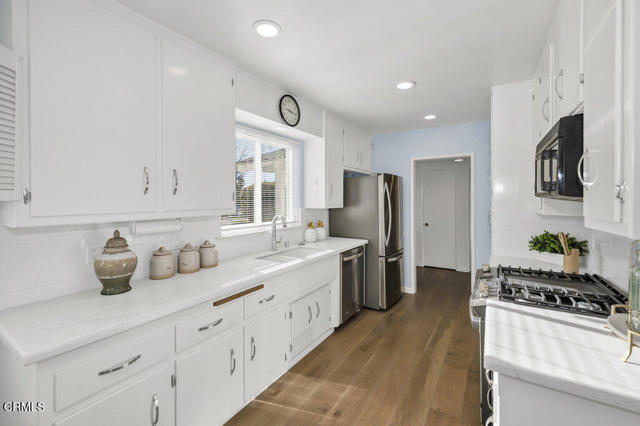 Located in the prime Padre Park area of Tujunga, this one story, light and bright home features a great floorplan with a formal living room and an updated kitchen with stainless steel appliances. The kitchen opens to a great room with fireplace and dining area. Additional features include central air conditioning and in-house laundry. The rear grounds offer a delightful covered patio and ample lawn area plus a detached two-car garage. The spacious corner lot is situated on a tucked away cul-de-sac with proximity to Foothill Boulevard shopping as well as the 210 Freeway