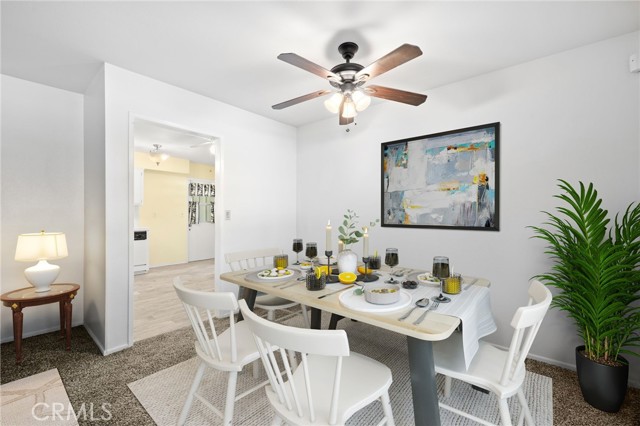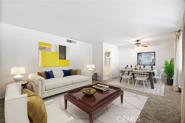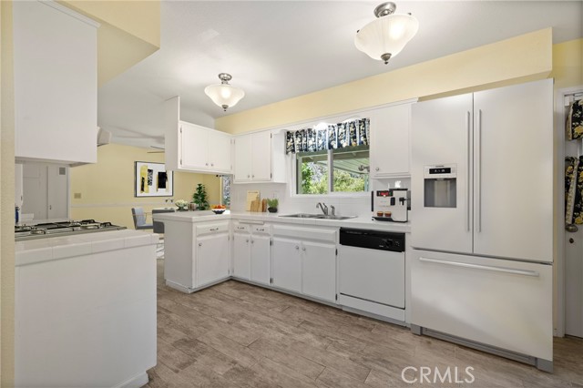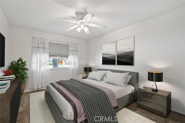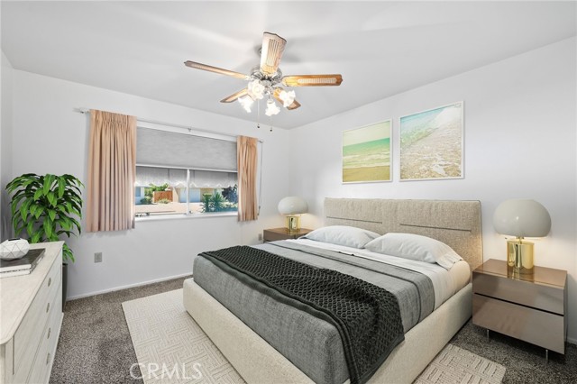 Welcome to this delightful 3-bedroom, 2-bath home in Kern City’s 55+ community—1,613 sq. ft. of turnkey space ready for you to move right in! Enjoy charming neighborhood views through the large front window. Freshly painted walls and updated neutral carpet create a comfortable setting with seamless flow into the kitchen. Bright and inviting, the kitchen area offers a charming blend of vintage character and functionality. The spacious layout includes a full wall of built-in glass-front cabinetry, perfect for displaying your favorite dishware or collectibles. Clean white tile countertops, a breakfast bar, and plenty of prep space make the kitchen both practical and welcoming. The primary bedroom features not one, but two closets, giving you ample room for storage and helping keep your space organized and clutter-free. Step outside to a covered backyard patio, an ideal spot for reading, relaxing, or entertaining—while taking in views of the golf course just beyond your yard.