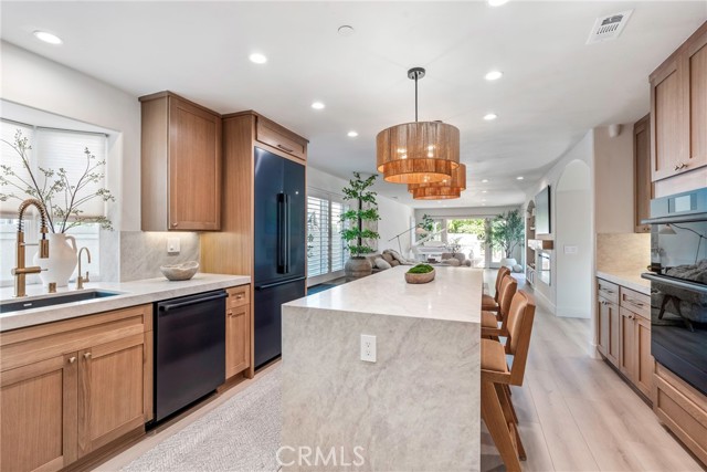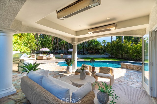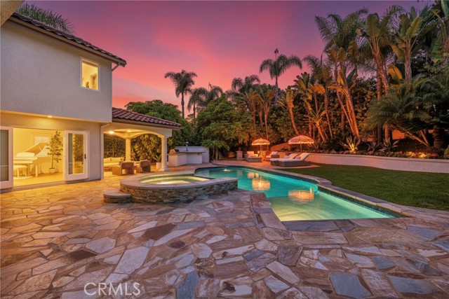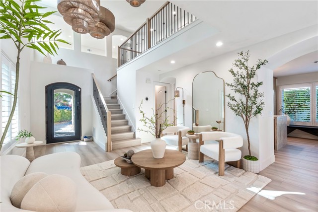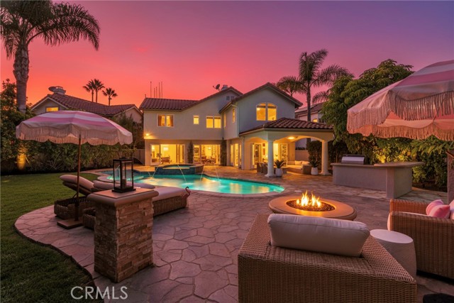 THE MOST PRIVATE LOT IN MONARCH BEACH Set behind the gates of prestigious Monarch Beach, this stunning coastal retreat rests on one of the most private and desirable lots in Dana Point. With peekaboo ocean views from the front and serene mountain vistas from the rear, the residence embodies modern organic luxury and effortless Southern California living. Completely reimagined from the ground up, the home underwent a full renovation completed in October 2024, with additional design enhancements in April 2025. Every surface and system was renewed, blending timeless craftsmanship with today’s high-end finishes to create a light-filled sanctuary where style and comfort meet. An open layout welcomes you with soaring ceilings, expansive windows, and a calming natural palette. The chef’s kitchen features quartz countertops, professional-grade appliances, and custom cabinetry flowing seamlessly into the family room. Dual French doors extend the living space to a resort-style backyard for true indoor-outdoor living. Every detail reflects elevated design—from new flooring and lighting to reimagined bathrooms with designer tilework, sleek fixtures, and custom vanities. The home includes an upgraded HVAC system, smart home integration, and energy-efficient owned solar with battery backup. Outside, the resurfaced Pebble Tech pool sparkles beside a custom outdoor kitchen with built-in BBQ, sink, and prep area. A covered lounge with heaters and ceiling fans invites year-round enjoyment, while a fire pit and multiple seating areas offer the perfect setting for entertaining or quiet evenings under mature 25-foot palms and manicured hedges. Upstairs, the primary suite is a serene retreat with dual walk-in closets and a spa-like bath featuring a soaking tub, walk-in shower, and dual vanities. Additional bedrooms, including a private en-suite, provide flexibility for guests or work-from-home needs. All furnishings are brand-new Restoration Hardware pieces, curated to complement the home’s modern organic design and available for purchase. Just a short e-bike or golf cart ride from the beach, this home offers easy coastal access while maintaining total privacy. HOA offers 24-hour guard-gated security, a dog park and hiking trails to the ocean. Minutes from the Ritz-Carlton, Waldorf Astoria, Salt Creek Beach, and the new Dana Point Harbor, this home offers unmatched privacy, elegance, and resort-inspired living. Love where you live—Monarch Beach perfection awaits.