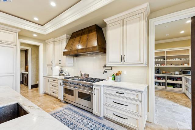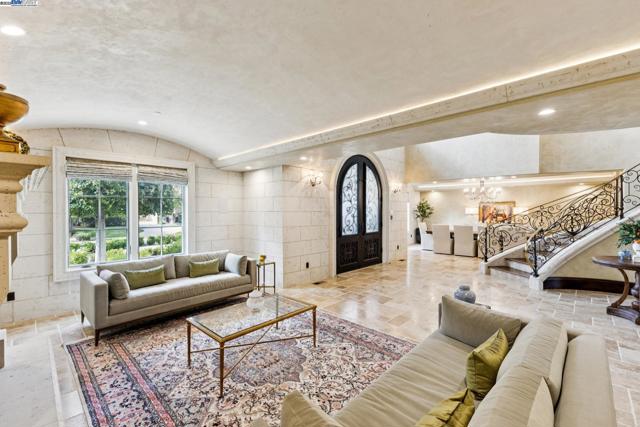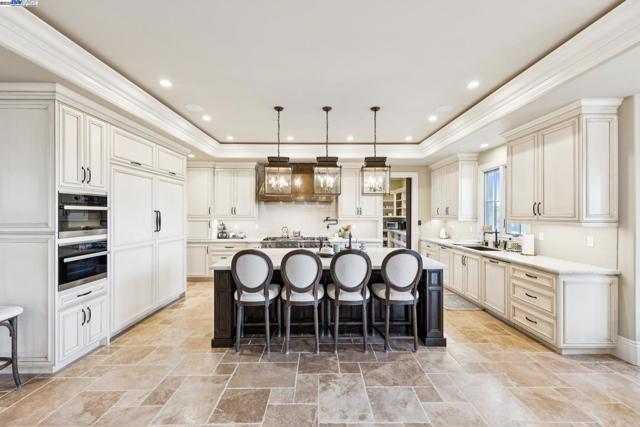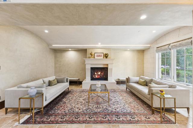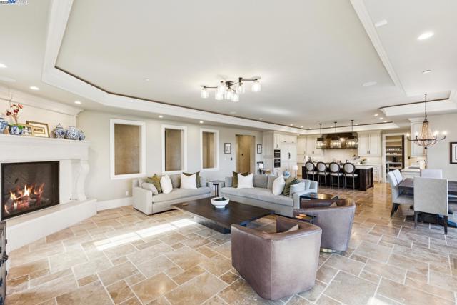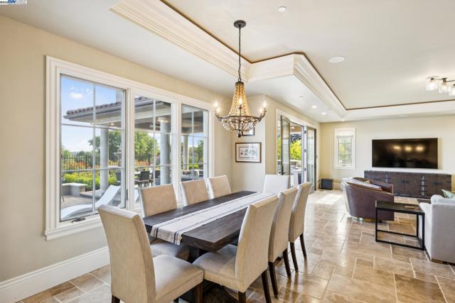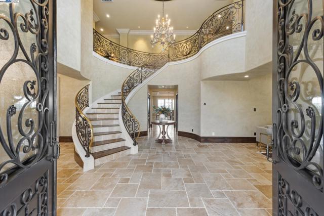 THIS IS IT! Stunning Modern Mediterranean estate with 5 bedrooms, 5 baths, 2 half baths on a private ½ acre view lot. Dramatic exterior finishes with columns, balustrades, and limestone accents, Elegant living and dining rooms featuring arched ceilings, rope lighting, gas fireplaces, and built-in speakers. The kitchen is a chef’s dream, with a large center island with bar seating, top of the line appliances, and a walk-in catering pantry. The spacious family room enjoys fabulous views of the yard, with coffered ceiling and gas fireplace. Also on the main level is a guest suite, utility office, and stately library/parlor. Upstairs the stunning primary suite features a spa like bath, dual walk-in closets, a retreat, and an expansive viewing balcony with incredible views. There are 3 additional bedroom suites upstairs, along with a fully equipped home theatre room, lounge and laundry room. Other amenities include a 5 car garage, interior elevator, hardwood and travertine floors, designer light fixtures, wine closet, limestone accents, extensive mill work & moldings, and more. The resort-like rear yard is an outdoor oasis with pool, spa, and gas fire pit, and decorative fountain, as well as a covered loggia with outdoor kitchen, sitting area, and fireplace. Welcome Home!