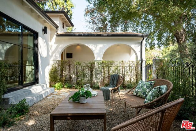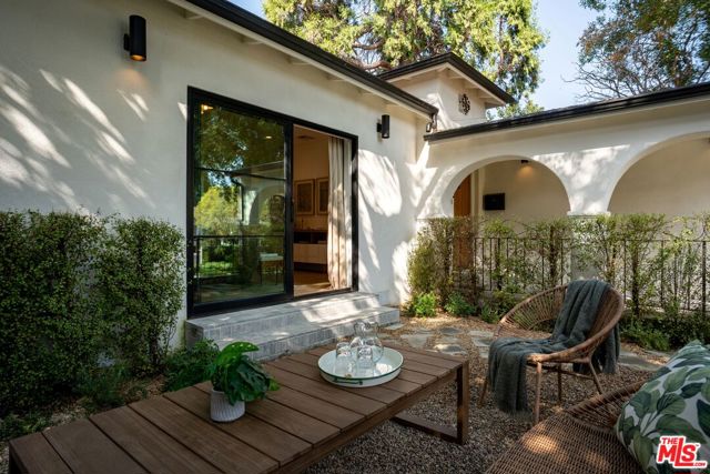 Tucked away in a grove of flourishing oak trees lies a mini compound where classic Spanish charm meets modern minimalism. Beyond the quaint exterior lies a two-bedroom, one-bath sanctuary with an airy open design that feels both expansive and intimate. Bathed in golden sunlight, streaming through a tranquil courtyard, the living room with alluring fireplace is a serene setting for entertaining or moments of quiet reflection. Flowing seamlessly from the living area, the dining room opens into an artfully designed kitchen where sleek, modern lines inspire culinary creativity. Step outside into a backyard oasis where a grand tree offers gentle shade and a well place fire pit provides the perfect setting for gatherings under the stars. Beyond the main residence, a designer built ADU awaits like a secret treasure. With its own address and entrance, this captivating retreat offers three bedrooms and two bathrooms, each space thoughtfully designed. The open concept living room, illuminated by a skylight, transitions gracefully into a kitchen that feels like the soul of the home. Discover this hidden gem where serenity meets versatility. Designed for multi-generational living, it features flexible spaces ideal for a home office or creative studio, comfortable accommodation for visiting guests, and excellent rental income opportunities. Whether you're seeking a peaceful natural setting or a dynamic live-work lifestyle, this property delivers.