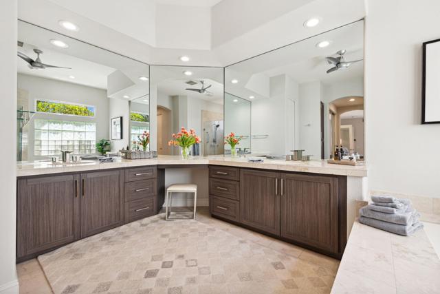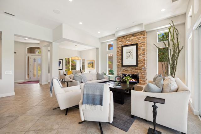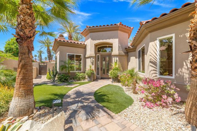 GOLF MEMBERSHIP AVAILABLE, no wait. SOUTH & WEST sunset vistas - Santa Rosa and San Jacinto Mountains. LUXURY Redefined: 12-ft ceilings + expansive sliding glass panels, Restoration Hardware-inspired neutral palette. GOURMET kitchen: Top-tier appliances, custom cabinetry, spacious pantry. Enjoy intimate dinners or festive gatherings. 3 ENSUITE RETREATS. Primary + Powder Toto washlets. YEAR-ROUND COMFORT: 42-panel OWNED solar (net-zero bills); 3 new ACs + whole home air purification. Motorized shades + garage AC. OUTDOOR SANCTUARY: Therapeutic saltwater spa + custom fire pit + BBQ island + motorized retractable awnings + misters. Membership includes all club amenities - Pickleball, Tennis, Fitness, Bocce, 3 Restaurants. SCHEDULE YOUR PRIVATE TOUR. Offers, if any, due Monday, Dec 1st.
