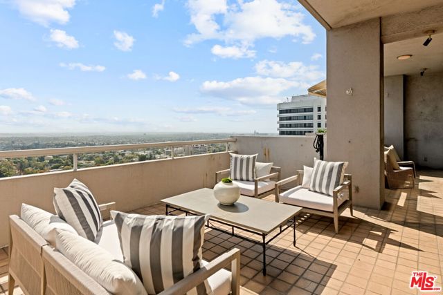 Once in a great while does an expansive Penthouse such as this become available on Los Angeles' famed Wilshire Corridor. Now for sale for the first time in over forty years, this very special condominium home offers an unusual amount of elegant, sun-bathed space with dazzling forever views from most every room. The wide and welcoming formal foyer is ideal for showcasing art. In the north wing, find a very spacious, well-planned kitchen with a butler's pantry and a sweet breakfast area. Adjacent is the large formal dining room with seating for twelve and access to the northern terrace, with its serene views of the Los Angeles Country Club greens, its views of the wooded mountains and hills and its views of the beautiful Bel-Air and Holmby Hills residential neighborhoods to the north. There's also an open family room in this wing, perfect as an office or as a casual TV room. The south wing features a vast living room complete with a decorative fireplace and a very pub-like, sit-down bar. The large southern terrace is accessed here and is the perfect spot for lounging comfortably while taking in the dramatic, sparkling city lights vistas stretching all the way to the ocean. This wing also features a second kitchen and a laundry area. The primary suite is enormous and private with its own sitting room, its dual baths and its dual closets. Equally private is the ensuite guest bedroom. Two guest powder baths and an abundance of storage space complete this fabulous floor plan. Since this home is the product of having combined two units many years ago, there is flexibility in the floorplan should one wish to potentially capture additional bedrooms or make other changes. The very central location is quite proximal to UCLA and to Beverly Hills, Westwood, Century City and Brentwood and all the fine shopping and dining each area affords. Coveted inclusion in the Warner Avenue Elementary School district. The Wilshire- Comstock is a well-regarded, full-service building with around-the-clock doormen. Its location is extra special since ingress and egress is on quieter Comstock Avenue versus on busy Wilshire Boulevard. Please see listing sheet for a full roster of amenities.