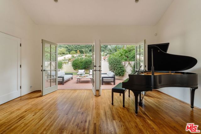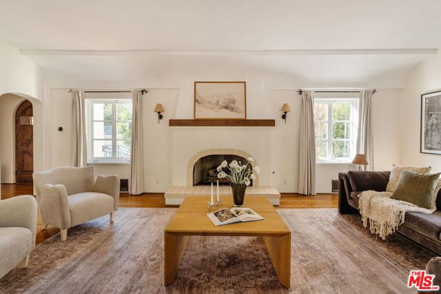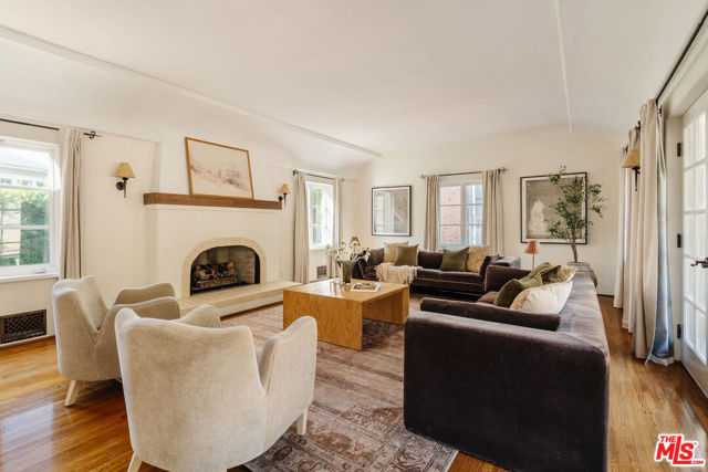 Discover this exquisite Spanish estate tucked away on a quiet, tree-lined street in the coveted Lake Hollywood Knolls. Offering a secluded sanctuary of timeless character and beauty, this residence captures the essence of authentic Spanish architecture with thoughtful details and enduring elegance. As you arrive, custom Spanish tiles grace the front stairs and landing, highlighting the home's timeless charm. Inside, no detail has been overlooked. A formal foyer welcomes you into sunlit interiors where each room is generously sized and designed with both comfort and style in mind. Rich oak hardwood floors flow throughout, while custom wrought iron handrails add an unmistakable touch of craftsmanship and refinement. The main level unfolds seamlessly, revealing warm, inviting spaces meant for both everyday living and entertaining. The living room centers around a beautiful fireplace and opens through French doors to the stunning backyard, creating effortless indoor-outdoor flow. A formal dining room offers the perfect setting for gatherings, and the chef's kitchen impresses with custom cabinetry, high-end appliances, and abundant natural light. Two spacious bedrooms complete the downstairs, including one with direct backyard access through French doors, along with a beautifully appointed full bathroom. Outside, the grounds are truly spectacular. The yard features California-inspired, drought-tolerant landscaping surrounded by lush greenery, mature bougainvillea, and two expansive lawns. A custom-built pool and spa serve as the centerpiece of this entertainer's retreat, complemented by multiple seating areas that invite relaxation and connection. Upstairs, two additional bedrooms include the serene primary suite, complete with a fireplace, sitting area, and an oversized balcony overlooking the verdant grounds below. Rare for California, the property also includes a spacious basement offering a temperature-controlled wine cellar and over 1,100 square feet of additional space not included in the home's square footage. This versatile area provides endless potential for storage and creative use, setting this estate apart from anything else in the area. With timeless details, effortless indoor-outdoor living, and an undeniable sense of tranquility, this home is a Spanish estate of rare caliber, exquisite, enduring, and one-of-a-kind.