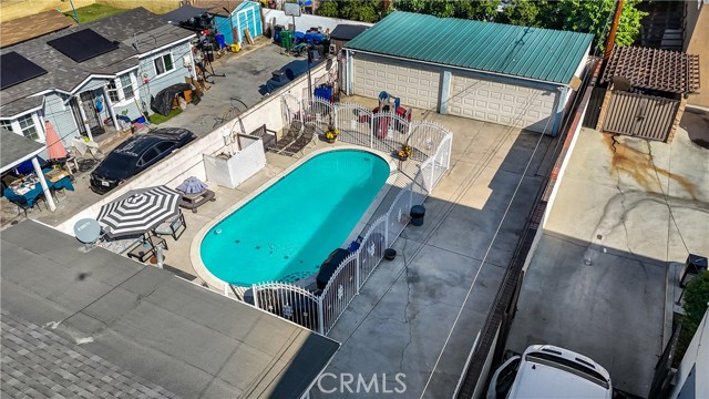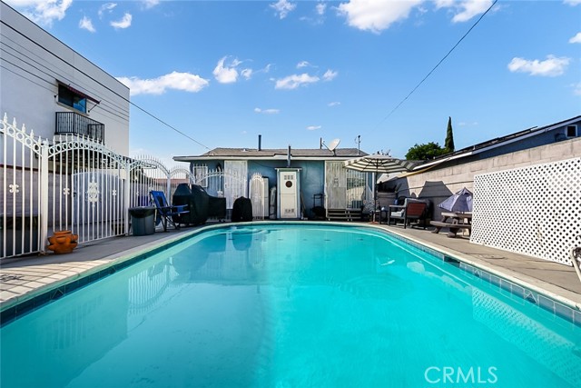 Welcome to 6336 Pala Avenue, Bell — a beautifully maintained 2-bedroom, 1-bath single-family home offering 858 sq. ft. of living space on a generous 5,859 sq. ft. lot. This gated property blends comfort, functionality, and future potential, perfect for both homeowners and investors alike. Step inside to a bright living room with wood flooring, recessed lighting, and a seamless flow into the upgraded kitchen featuring quartz countertops, modern white cabinetry, and a stylish backsplash. Both bedrooms are spacious and feature brand-new carpet, while the large laundry area provides plenty of space for a corner office or extra storage. Enjoy outdoor living at its best — relax on the charming front porch, or entertain by the well-maintained, gated swimming pool. The property also features an extra-long driveway and a rare four-car garage, offering ample parking and workspace options. With R3 zoning, this property presents excellent potential for future expansion or development opportunities. Located in a convenient Bell neighborhood near schools, parks, shopping, and freeway access — this home truly has it all! Don’t miss this unique opportunity to own a move-in-ready home with great upside potential!