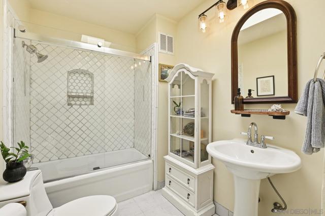 Discover your coastal sanctuary in this beautifully maintained Spanish-inspired residence, nestled in the coveted South Ocean Beach neighborhood just one block from the ocean. This 2-bedroom, 1-bath home offers an authentic yet polished retreat with timeless hardwood floors and abundant natural light flowing from front to back. The thoughtfully landscaped outdoor spaces feature mature trees and lush greenery, creating a private, tranquil setting perfect for relaxation or entertaining. An outdoor shower adds convenience after enjoying the sun and surf. The property’s fully fenced lot offers privacy and potential. The detached garage presents an opportunity to create a stylish ADU or, build-up and potentially capture breathtaking ocean views. The kitchens features durable butcher block countertops and a large, farmhouse sink-ideal for both everyday living and upscale gatherings. Seize the opportunity to enjoy the Sunset Sliffs lifestyle and own a distinctive beachside residence with endless potential to personalize and elevate. Moments from the ocean and all the amenities South OB has to offer.