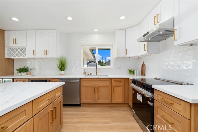 Welcome to this beautifully remodeled and spacious home in one of Orange’s most sought-after neighborhoods! Every detail of the brand-new interior has been thoughtfully upgraded, featuring modern finishes, new flooring, recessed lighting, and elegant fixtures throughout. The gourmet kitchen is perfect for entertaining, with sleek countertops, ample cabinetry, premium appliances, and a mini bar—ideal for hosting family and friends. The open-concept living and dining areas offer plenty of space for gatherings and everyday living. Retreat to the luxurious primary suite, featuring a stylish bathroom with high-end finishes, creating a private and comfortable sanctuary. Additional bedrooms are generously sized, offering flexibility for guests, a home office, or play areas. Energy-efficient dual-pane windows, solar, and Tesla batteries provide comfort and cost savings year-round. The backyard is an entertainer’s dream, complete with a jacuzzi and room for outdoor dining, relaxing, or play. Located within the Orange Unified School District and just minutes on foot from Orange Lutheran High School, this home perfectly combines luxury, convenience, and lifestyle. Truly move-in ready!