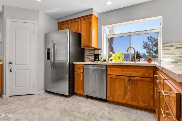 Fantastic opportunity to own a HOME within the coveted Valencia Northbridge Community. This amazing property offer Million Dollar Views from your private back yard, kitchen, family room and upstairs bedrooms. Situated just minutes from walking trails, paseos, neighborhood parks, bike paths, multiple pools, tennis courts and so much more. The primary suite offers a walk-in closet and a private balcony. Quality finishes throughout the property. Most noticeable upgrades include remodeled bathrooms and kitchen, marble tile floors, wood shutters, stamped concrete, in ground Private Pool and porcelain tile floors to name a few... The quiet cul-de-sac location offers peace, privacy and minimal through-traffic. The location is near shopping, dining and entertainment at the Valencia Town Center, along with easy access to major freeways for commuting or travel. Your private Oasis awaits!