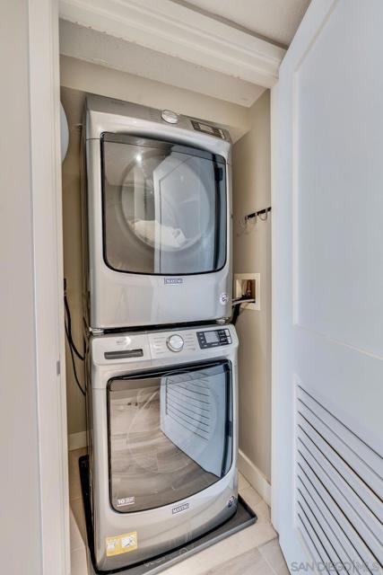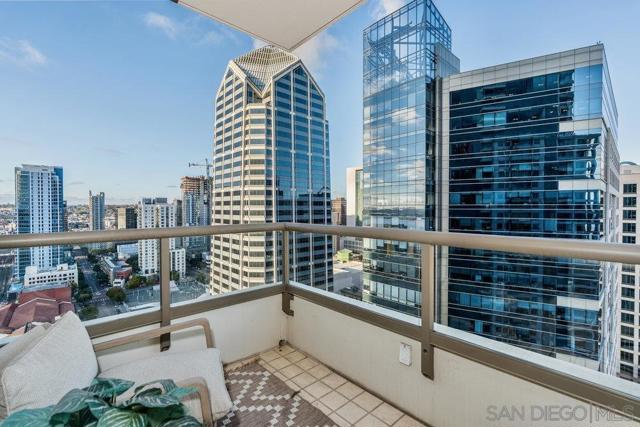 Highly sought-after 04-floorplan at The Electra — Skyline & Bay-front Luxury Condo Discover residence 2404 in the iconic Electra high-rise—an elevated urban retreat perched above downtown San Diego with panoramic downtown skyline and San Diego Bay views. Step into a bright, open-plan living and kitchen area wrapped in floor-to-ceiling glass offering uninterrupted vistas of the waterfront and city-lights. This premium condo features two private balconies, perfect for soaking in the dynamic downtown lifestyle. The gourmet kitchen boasts high-end stainless steel appliances, a Maytag dishwasher, and a sleek pull-out faucet—melding functionality with modern elegance. Everyday convenience is delivered with an in-unit washer and dryer complete with upgraded shut-off valves. The primary suite is a serene sanctuary with its own private balcony overlooking the ocean and bay. The newly re-imagined spa-inspired bathroom includes dual shower heads and handhelds, dual vanities, luminous back-lit mirror and bespoke modern finishes. A custom California Closet delivers resort-style organization and luxury. This residence includes two premium parking spaces and a private storage unit—adding practical luxury to your downtown high-rise lifestyle. Ideally located just steps from Little Italy, Electra 2404 embodies refined downtown living, luxury condo sophistication, and unbeatable waterfront views.