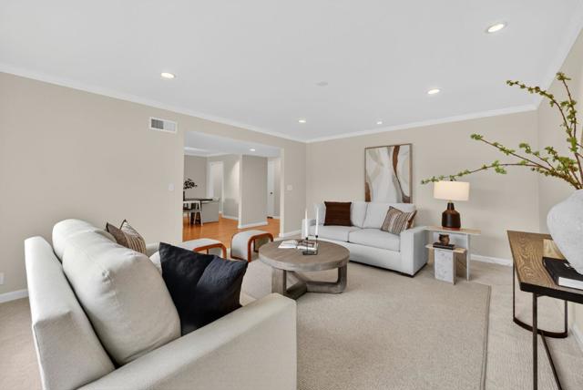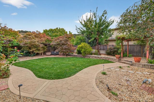 With classic Spanish arches and beautiful landscaping, this enchanting residence is a delight to come home to! The idyllic location backs to lush foothills in a quiet and attractive Blossom Valley neighborhood. The front entry connects the spacious dining room on the left to the cozy living room on the right. At the rear of the house, the kitchen, with ample storage and an open design, is joined with the family room, which features a fireplace and access to the back yard through a sliding glass door. This kitchen/family "great room" layout is ideal for entertaining or staying in, and the easy access to the yard makes indoor-outdoor living a breeze. The bedroom wing includes four total bedrooms, one en suite with an updated bath featuring a large tile shower. The backyard is beautifully landscaped with a large deck, a pergola, nice grassy area, and plenty of mature trees (including gorgeous maples), flowering shrubs and rose bushes. Other amenities include central AC and heat, an indoor laundry room and pantry and an attached two car garage. The location of this friendly Blossom Valley neighborhood can't be beat - easy access to shopping, dining, commute routes and excellent schools!