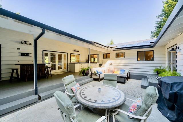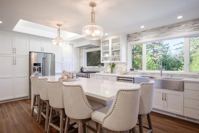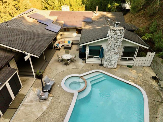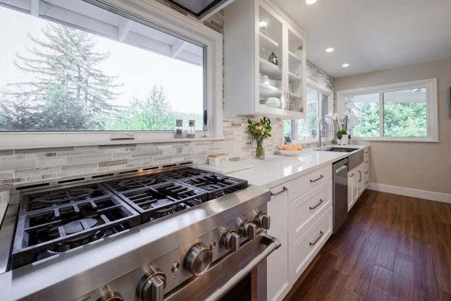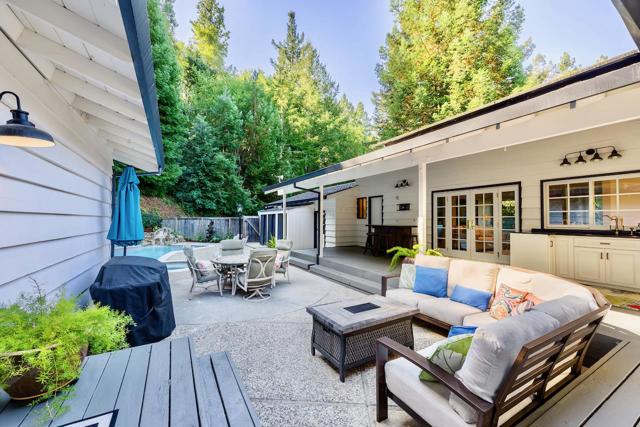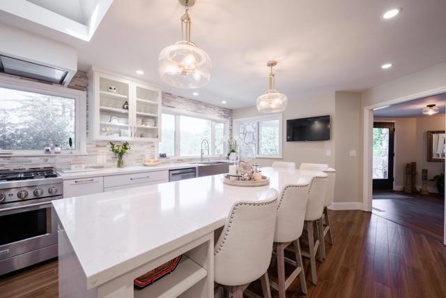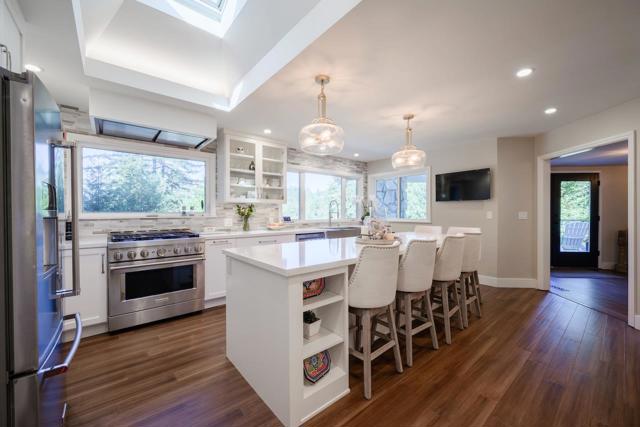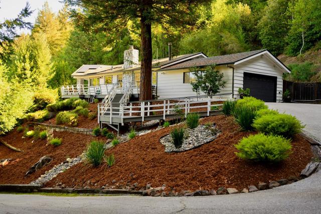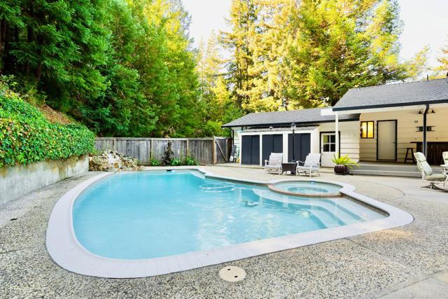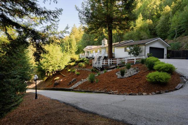 Gorgeously remodeled custom retreat on 3.78 acres of privacy and beauty! Tucked away at the end of a peaceful lane yet just minutes to town, this stunning single-level home captures breathtaking valley views from nearly every angle. The sprawling floor plan offers 4 bedrooms PLUS office, both a formal living room & separate family room. You'll fall in love w/ the spectacular chefs kitchen, featuring quartz slab counters, grand island w/ seating for 6, custom cabinetry, a built-in Miele espresso station, & top-of-the-line SS appliances all framed by gorgeous sunset views. The primary suite is an absolute sanctuary, complete with its own fireplace, walk-in closet, and a luxurious en suite showcasing a steam shower and a claw-foot soaking tub. Outdoors, entertain and unwind beside the sparkling pool with rock waterfall and spa, outdoor bar and kitchen. The property also features an expansive yard with artificial lawn, a charming children's tree house with a view porch, and countless spaces to relax and enjoy the serene surroundings. For animal lovers, there's a two-stall barn, tack room, chicken coop, and corral with direct trail access to Glenwood Open Preserve right from Canham Road. Two 2-car garages, solar, a whole house fan, and generator. Scotts Valley has great schools, too!