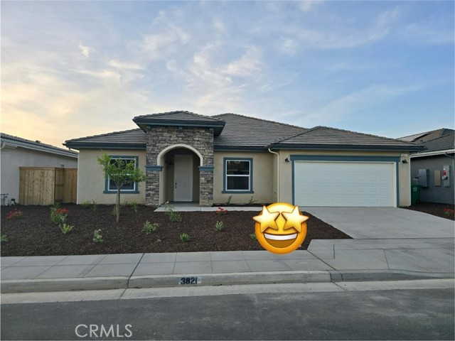Welcome to 3821 Via Santa Barbara Avenue in Madera a stunning new construction by Carmel Homes! This modern 4-bedroom, 2.5-bathroom home offers 2,418 sq. ft. of beautifully designed living space on a 6,180 sq. ft. lot in highly desirable West Madera, near Lincoln Elementary School. Step inside to an open-concept floor plan featuring luxury vinyl plank (LVT) flooring, contemporary lighting, and spacious rooms filled with natural light. The gourmet kitchen is a showpiece, complete with granite countertops, built-in stainless steel appliances, gas cooktop, and a large center island perfect for entertaining. Designed for modern efficiency, this home includes a tankless water heater, solar power options (purchase or lease), and an attached 2-car garage. Each bedroom provides comfort and style, with high-quality finishes throughout. Experience the perfect blend of craftsmanship, comfort, and energy efficiencyschedule your private showing today!