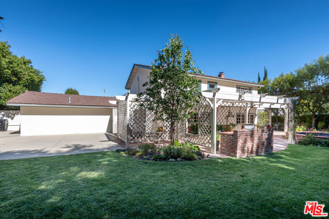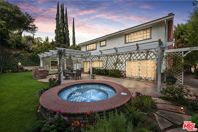 Welcome to 3563 Alana Drive, a beautifully maintained home that perfectly blends warmth, tradition, and timeless style. Lovingly cared for by long term owners, this immaculate view residence is now ready for its next lucky chapter. Ideally situated in the highly sought after Westside & Mulholland close Royal Woods area of Sherman Oaks, this inviting property offers a rare three car attached garage and an ideal, well balanced floor plan. A formal entry opens to elegant entertaining spaces, including a gracious dining room and a spacious living room centered around a classic fireplace. The light filled kitchen overlooks the home's lush grounds and features a sunny breakfast nook that flows seamlessly into the comfortable family room. French sliding doors open to a private, resort-like backyard with a pergola shaded patio, swim spa perfect for a splash pool, fruit trees, and custom landscaping a tranquil retreat for outdoor living and dining. Upstairs, you'll find four generous bedrooms, including a serene primary suite with a sitting area, multiple closets, and a spa inspired bath. Move right in and enjoy its inviting character, or personalize it to reflect your own taste and style. Come experience the warmth, charm, and possibilities of 3563 Alana Drive your next chapter begins here.