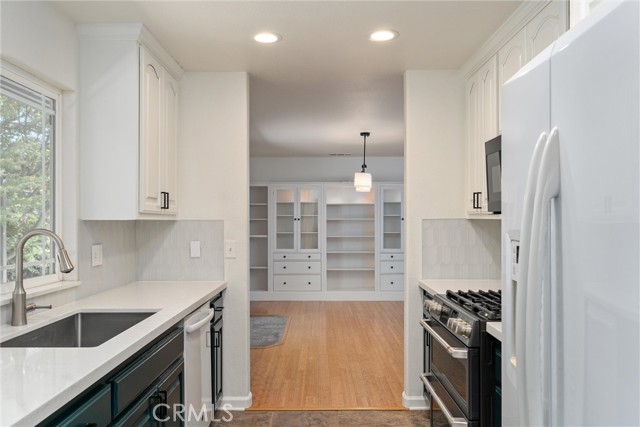 Welcome to this charming 3-bedroom, 2-bath ONE OWNER home built in 2007, perfectly located within Oroville city limits. This beautifully maintained residence offers a modern-classic design with thoughtful upgrades throughout. The upgraded kitchen features modern colored cabinets, quartz countertops, exclusive backspace and a stunning backyard view from the sink window. A Café brand gas range and microwave add both style and functionality, while the adjacent laundry room offers added convenience. Enjoy the spacious living and dining areas, highlighted by built-out display cabinets and large windows that fill the home with natural light. The guest bedrooms are generously sized with large closets and generous windows. The primary suite includes a large wall closet and seperate walk-in closet. Incuded in the primary bedroom is the private bathroom with walk in shower. Enjoy the convenience of central heating and air AND a whole house fan. Step outside to a peaceful backyard surrounded by mature landscaping that provides privacy and shade during warm summer months. The back deck is perfect for entertaining, with lush greenery and easy access through large sliding doors from the dining area. A two-car garage, extra parking space, and an additional, storage shed add plenty of storage space for extra cars, toys or hobbies. With central heating and air, mature landscape and a convenient location, this home offers year-round comfort. Ideally situated near scenic walking paths along the river and just minutes from downtown Oroville, you’ll enjoy both natural beauty and everyday convenience right at your doorstep. This is truly a wonderful place to call home.