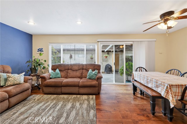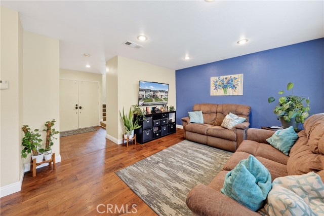 Now's your chance to live in the highly sought after Sunny Hills Village right here in the city of La Habra. As you enter the home you'll notice the natural light coming through the big living room windows and sliding glass door that leads to a private patio. Featuring beautiful walnut wood floors, this cozy living room is perfect for watching your favorite TV shows, reading, or just relaxing at home. You'll enjoy cooking in this updated functional kitchen. There is lots of counter space and more natural light coming from the over-the-sink-window that faces East. The kitchen features a brand new dishwasher, granite counters, shaker style cabinets, farmhouse sink, and lots of storage. Upstairs has a large primary bedroom with double door entry, full length mirrored closet, and direct access to the bathroom. This bathroom has lots of storage and can be accessed from both bedrooms. The second bedroom has a large window that faces West, an oversized closet that can hold all your clothes/accessories, and the same beautiful walnut wood floors that the living room has. Your private patio is perfect for BBQ, spending time with loved ones, gardening, or just relaxing after a long day of work. With direct access from the garage into both the home and patio, this property creates a smooth indoor-outdoor connection. Once you pull in and close the new garage door, the entire space is yours to enjoy in comfort and privacy. The laundry hook ups are located in the garage with lots of storage. This community has so much to offer with a pool, playground, sport court and more. Don't miss out on an opportunity to live in this wonderful neighborhood.