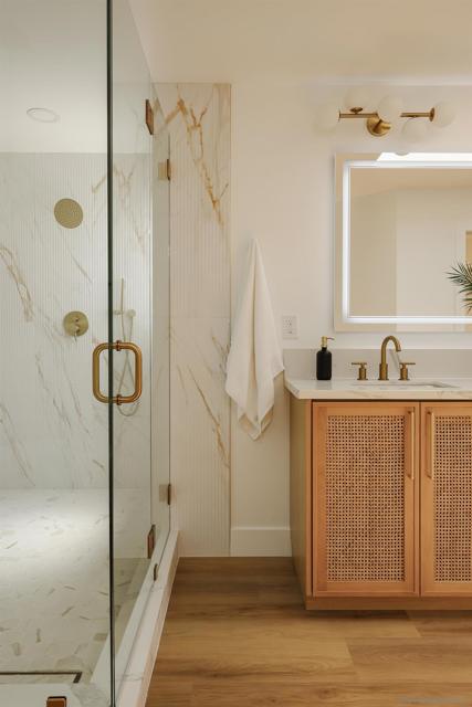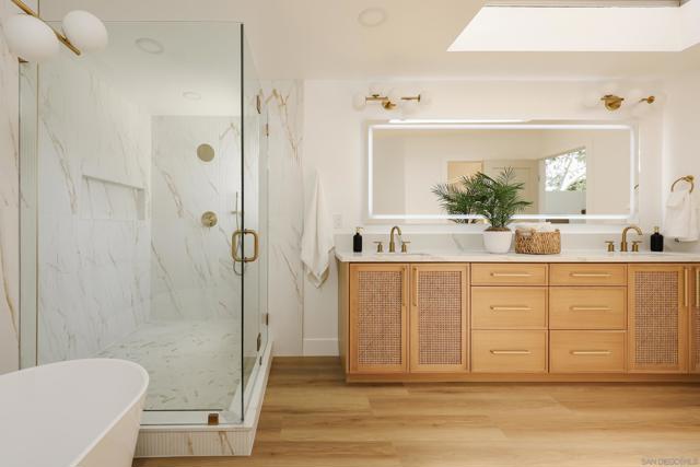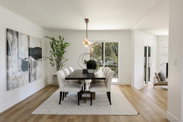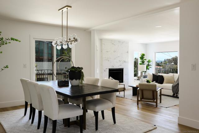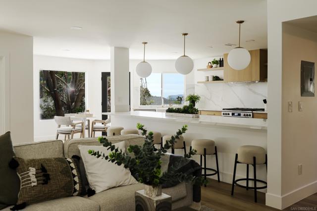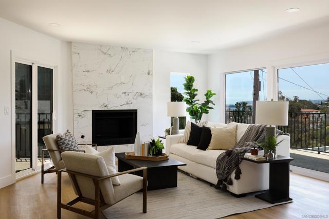 2861 Brant in Mission Hills is a stunning 3-bedroom, 3-bathroom residence spanning 2,940 square feet, boasting of canyon/harbor views. Nestled in the prestigious Mission Hills enclave of North Arroyo Canyon neighborhood, this property combines modern luxury and unparalleled living experience. Open-concept design maximizes space and natural light, creating a bright and airy ambiance. Home flows seamlessly from the gourmet kitchen to the expansive living and dining areas, perfect for entertaining or spacious family living. The fully renovated kitchen is a chef’s dream, featuring high-end stainless steel appliances, custom cabinetry, quartz countertops, a large center island, and designer fixtures, all tailored for both functionality and style. Home has been completely transformed with top-tier upgrades, including luxury vinyl flooring, recessed lighting and aesthetic appeal and modern convenience. Three generously sized bedrooms provide ample comfort. The primary suite is a serene retreat with harbor view, a walk-in closet, and a spa-inspired en-suite bathroom featuring dual vanities, a soaking tub, and a walk-in show. All three bathrooms have been meticulously updated with premium materials, including sleek tiles, contemporary vanities, and high-end fixtures, offering a touch of sophistication. Expansive windows and thoughtfully designed wrap-around curated decking showcase the views of the western harbor, Point Loma, creating a picturesque backdrop for daily living and sunset gatherings. Situated in Mission Hills, the home offers proximity to San Diego’s