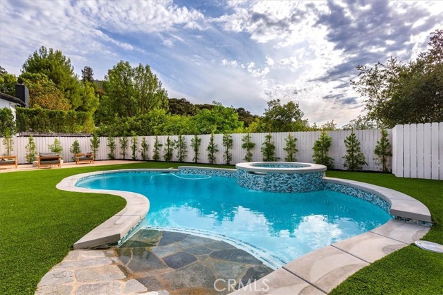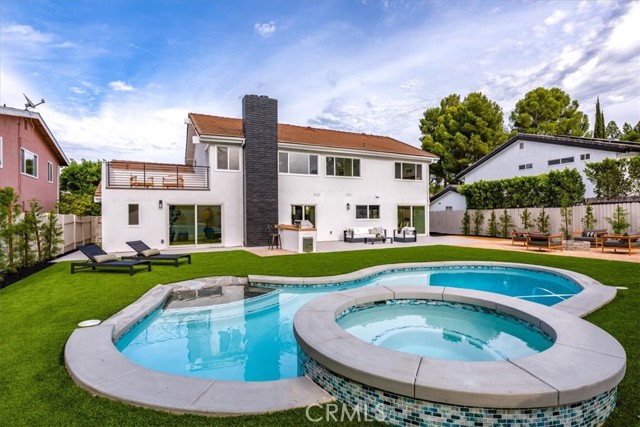Discover modern luxury at its best in this exquisitely remodeled home with amazing views, located in Woodland Hills' most sought-after Artists Colony neighborhood. With four bedrooms, two and a half bathrooms, and 2,594 Sqft of living space across two levels, this charming residence boasts modern finishes and an abundance of natural light throughout. The main level features a spacious family room with a beautiful precast fireplace, an open custom-built kitchen with new stainless appliances, a bright and airy living room, and a dining room. Upstairs, you'll find generously sized bedrooms, including a luxurious master suite with its own en-suite bathroom and a walk-in closet. The upscale finishes throughout the property elevate the living experience to new heights. Outside, the expansive backyard and side yard provide the perfect backdrop for enjoying the stunning views. And the inviting pool is the ideal spot for relaxation and entertainment. Experience the ultimate modern living in this exceptional home, where every detail has been thoughtfully designed for your comfort and enjoyment. . Situated just minutes from Ventura Blvd, shopping, cafes and high rated school! Additional amenities include a finished three car garage