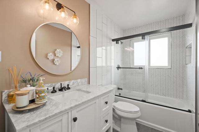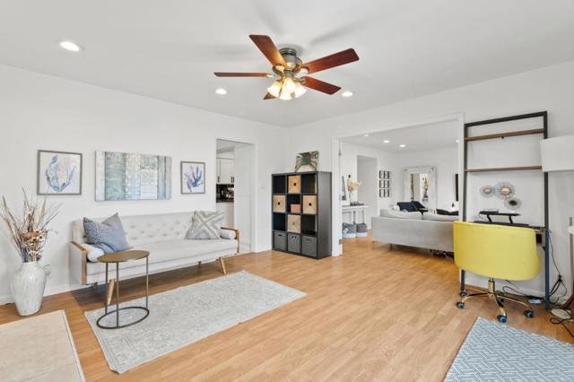 The feel-good home you have been searching for, located in a beloved neighborhood! A welcoming front porch & beautifully fenced front yard create an immediate sense of warmth and charm. This single-level home is perfect for entertaining, featuring an open-concept layout where the spacious living room flows effortlessly into the family room. Elegant French doors connect the two spaces, creating a stunning great room when opened. The bright, cheerful kitchen features stainless steel appliances and flows seamlessly into the spacious dining area. Primary suite features a walk-in closet along with a sleek, newly renovated bathroom. Hall bathroom has also been beautifully updated & the bedrooms are spacious. Step outside to your private backyard oasis, with pavers, lush turf, numerous delicious fruit trees, & two versatile side yards. Stunning hardwood floors, tons of storage options, a large attached 2 car garage, AC & so much more. Neighbors gather to enjoy visits from the Mister Softee truck. Moments away from local fruit stands, favorite breakfast spots, coffee shops, restaurants, & weekend farmers markets. Enjoy some of the best fitness facilities and hiking nearby. Phenomenal schools: Leitz Elementary, Dartmouth Middle School, and Branham High. This home has it all!
