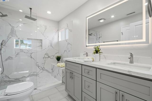 Welcome to this beautifully renovated NORTH-FACING 3-bedroom, 3-full bath home ( All bedrooms with attached full bath ) on a desirable corner lot, filled with natural light and modern elegance. Step inside to an open floor plan featuring fresh interior and exterior paint, new dual-pane windows, new dual color recessed lighting, brand new heating furnace and the stylish kitchen offers SS appliances, upgraded cabinets, Newly installed Storage cabinets adjoining the dining, high end countertops—perfect for cooking and entertaining. The spacious primary suite provides a luxurious retreat, while an additional bedroom with its own bath adds flexibility for guests or extended family. All bathrooms are fully remodeled with new vanities, designer tile, and electric mirrors. A new fireplace and updated closet doors add to the home’s charm. With ADU Potential, this move-in-ready home perfectly blends comfort, versatility, and contemporary design. “This fully remodeled home is move-in ready — just grab your stuff and settle in!” “A stunning epoxy-coated garage floor complemented by elegant recessed lighting transforms the space into an ideal venue for entertaining guests.”