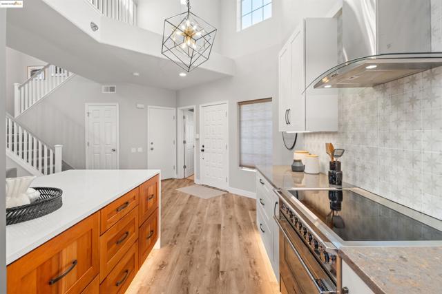 Set in Richmond’s sought-after Marina Bay community, this stylishly remodeled home blends modern design with coastal ease. The open-concept layout welcomes you with soaring ceilings, oversized windows, and streaming natural light that accentuate the home’s sense of space. A beautifully updated chef’s kitchen anchors the main level, featuring premium stainless steel appliances, quartz countertops, and a generous workspace and coffee bar, designed for both entertaining and everyday living. The adjoining dining and living areas flow seamlessly to your private yard and patio. Upstairs, the primary suite offers a serene retreat, featuring a walk-in closet and an en-suite bathroom with sleek fixtures and a spacious vanity. Smart energy upgrades include a solar system with battery backup (under the favorable NEM 2.0 plan through 2042), as well as an efficient heat pump that provides year-round climate control. Attached two-car garage with extra storage. Enjoy the peace of a well-kept community just steps from the Bay Trail, Marina Park, and the scenic shoreline. The Richmond Ferry, nearby cafés, and easy freeway access connect you effortlessly to Berkeley, Marin, and San Francisco. This home captures the best of Marina Bay living - modern, connected, and refreshingly relaxed.