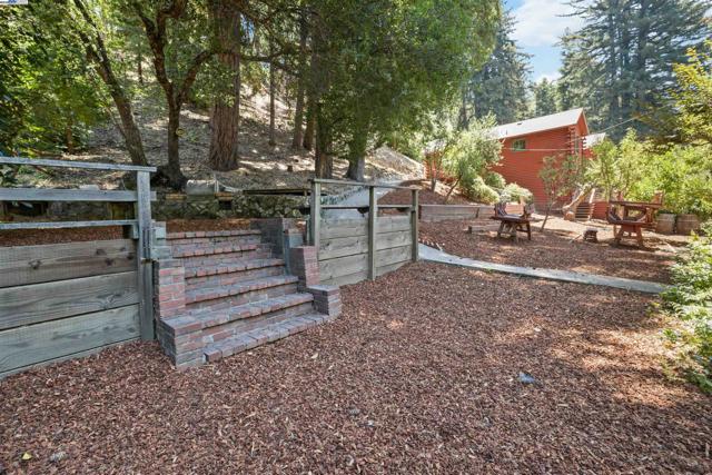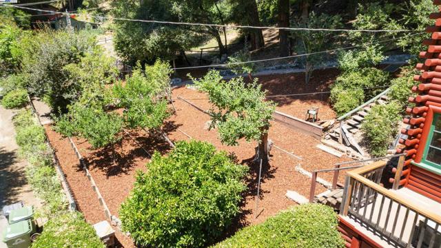 This charming log cabin-style home features exceptional curb appeal and fantastic indoor/outdoor living with multiple spacious decks overlooking the forest. The wood paneling throughout creates a seamless connection with nature, making you feel immersed in the majestic redwoods. Unique architectural features include vaulted ceilings in the living room and an inviting stone fireplace. Gardening enthusiasts will love the mature, fruit-producing trees, terraced garden space, ample flat usable land. Lovely flat lot in front of the house is included in this sale! Lot included in sale: 082-032-08 So much privacy and potential! This retreat is just 4 minutes from downtown Boulder Creek, where you can enjoy popular spots like Lillaeske, and world-class hiking and mountain biking trails. Discover the perfect blend of rustic charm and modern convenience in this enchanting mountain home! Summer home for many decades, it awaits imagination of new owners.