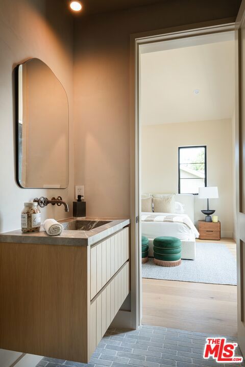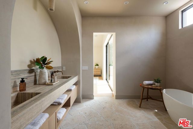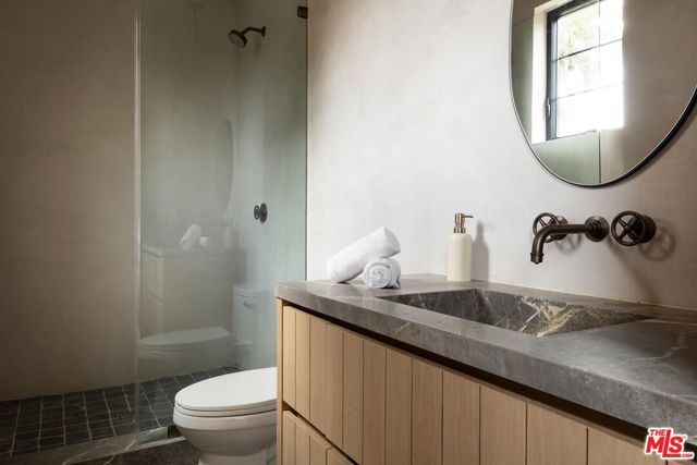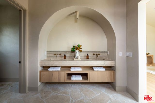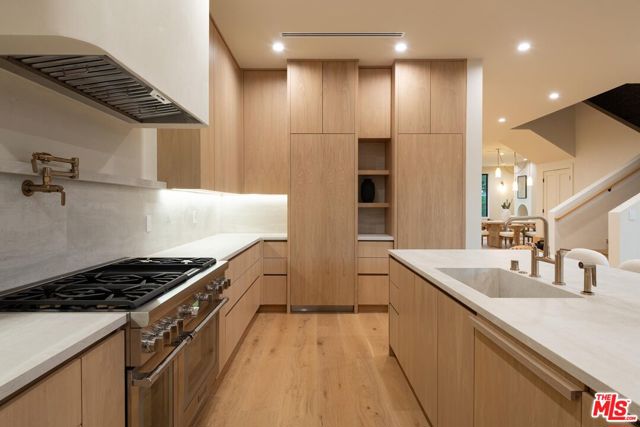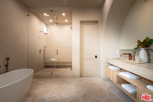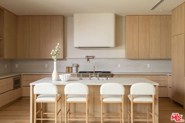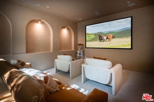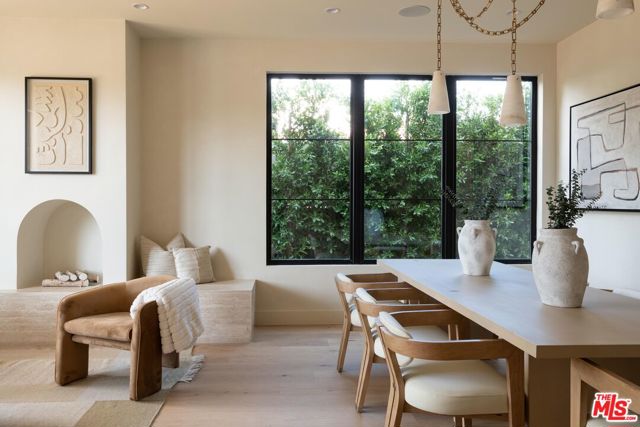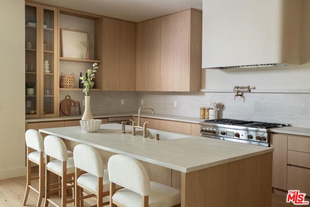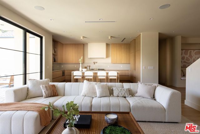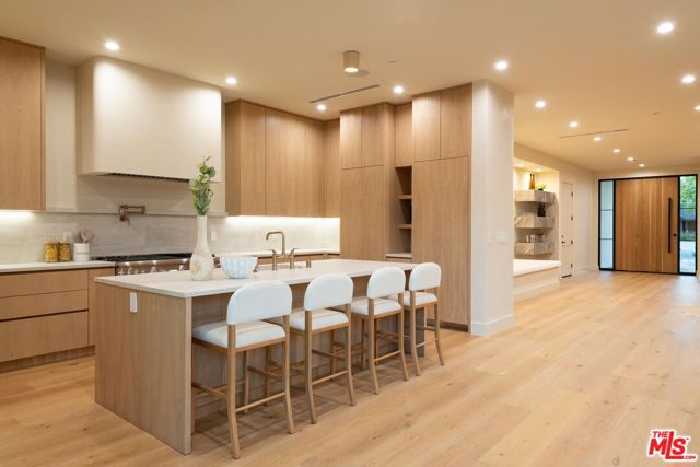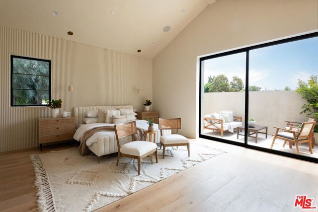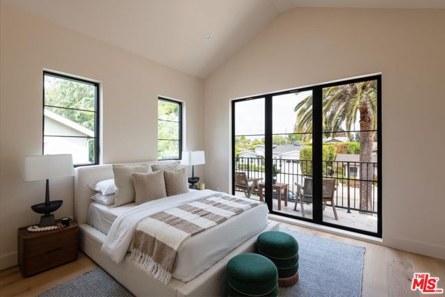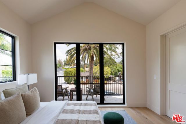 Discover this exquisite modern farmhouse, thoughtfully designed and nestled in one of Valley Village's most sought-after neighborhoods. Completely rebuilt, this 5BD/5.5BA estate showcases exceptional craftsmanship and sophisticated style, highlighted by designer finishes at every turn. Step inside to a grand open floor plan where abundant natural light creates a warm and inviting atmosphere. The formal living room offers plenty of seating and opens to the formal dining room, perfect for friends and family to gather. The chef's kitchen is outfitted with Thermador appliances, sleek porcelain countertops, and bespoke cabinetry. Adjacent to the kitchen, a fully-equipped separate prep kitchen stands ready for larger celebrations. The spacious family room features a dramatic electric fireplace, built-in shelving, and expansive floor-to-ceiling glass doors that open seamlessly to the backyard, offering effortless indoor-outdoor living. The first floor also offers a convenient en-suite bedroom, a theater room, and a stylish powder bath. Upstairs, four additional en-suite bedrooms await, including a show-stopping primary suite with vaulted ceilings, fluted wall accents, a private balcony, and a custom walk-in closet. The spa-like primary bathroom impresses with dual floating vanities, a freestanding soaking tub, a private water closet, and a large walk-in shower. A cozy loft, laundry room, and an additional outdoor patio complete the upper level. The entertainer's backyard is a true retreat, featuring a sparkling pool and spa, a spacious grassy area, and a built-in BBQ. Located within the coveted Colfax Charter School district and just moments from top dining and shopping, this home offers a perfect blend of luxury and everyday comfort.