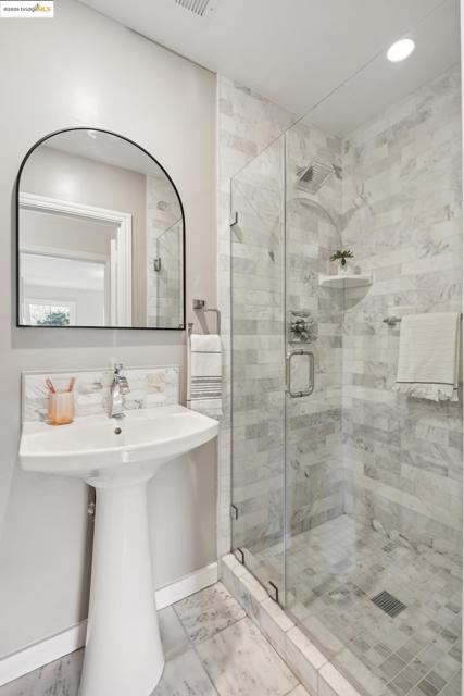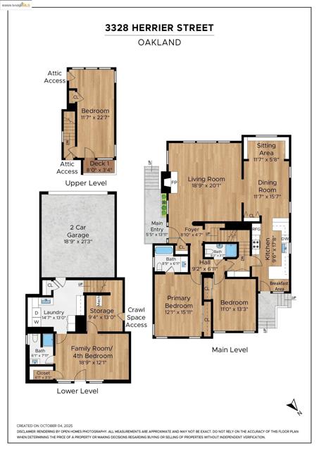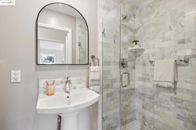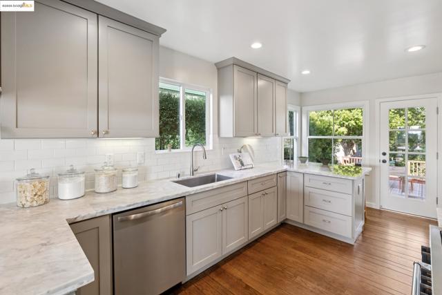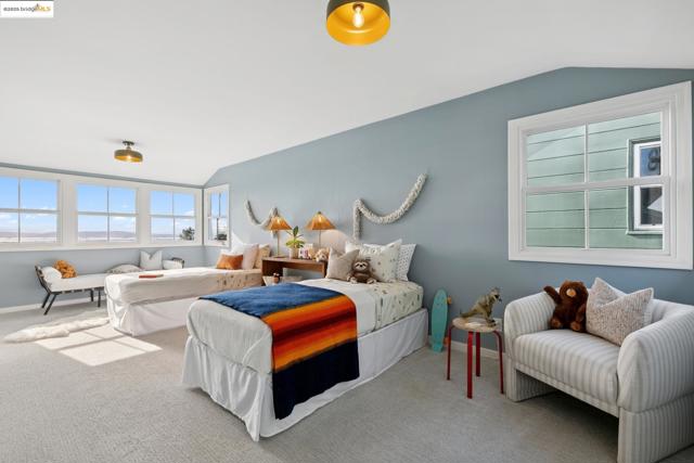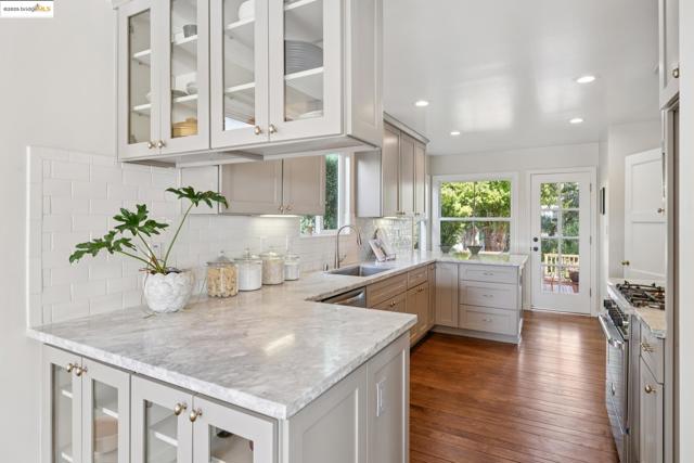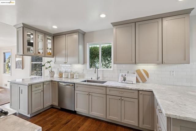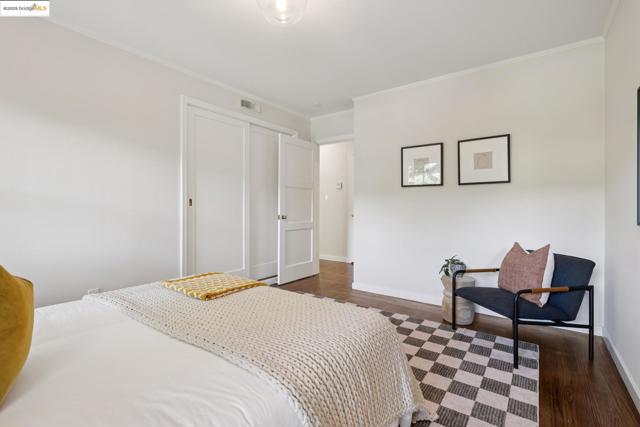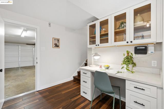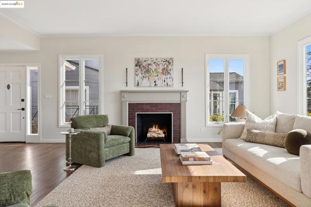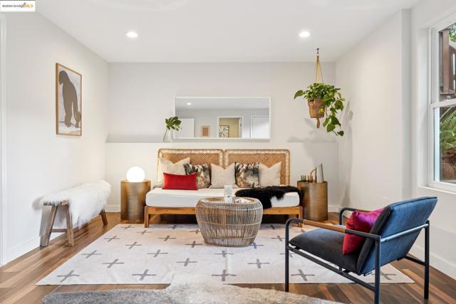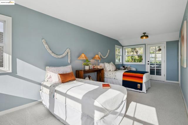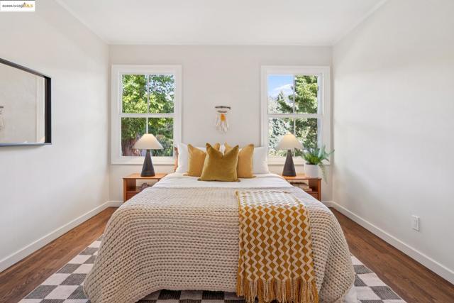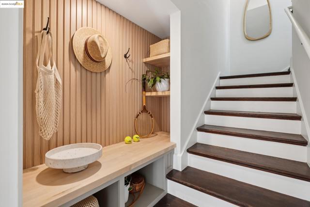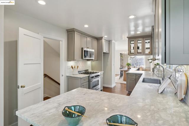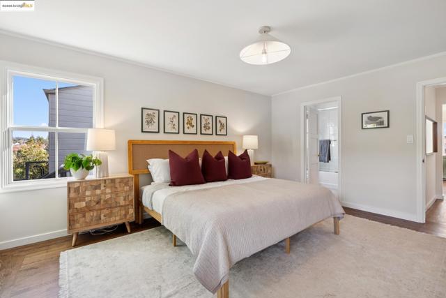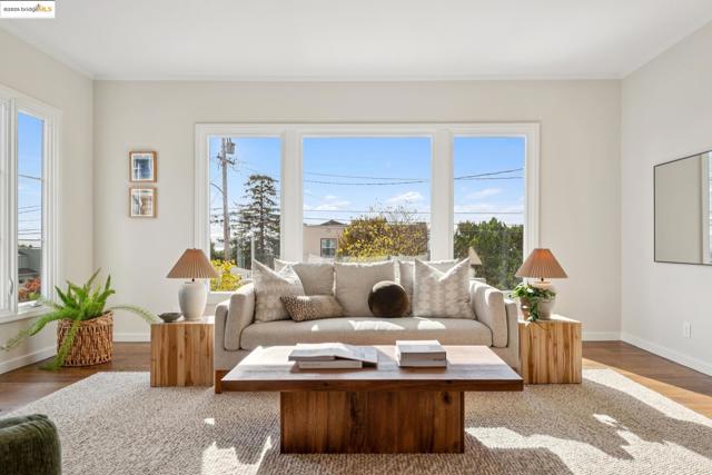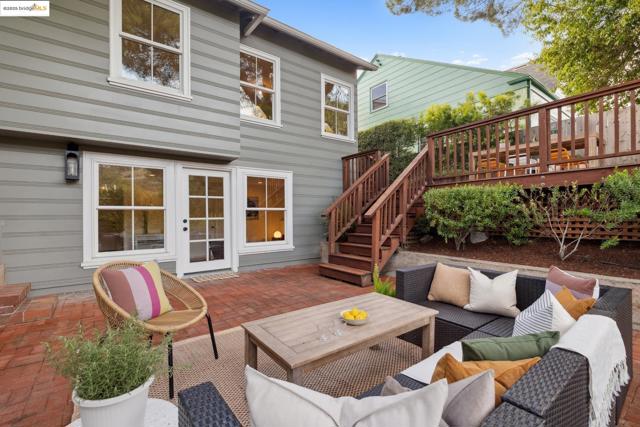 Rare Oakland Hills home checks every box. Midcentury charm w/ modern updates & fantastic Bay views. 3-level retreat w/4 bedrooms, flexible living areas, & seamless indoor-outdoor flow- minutes to top-rated Redwood Heights Elementary. Main level opens to bright living room w/ high ceilings & big windows framing views of San Francisco & Bay. Dining room adjoins the living room, connects to cozy reading nook & flows to updated kitchen. Refinished hardwood floors, custom details & built-ins preserve timeless character yet enhance everyday functionality. Reimagined w/ designer lens, kitchen pairs marble c-tops w/ b-fast bar & SS appliances, incl Bertazzoni gas range, new dishwasher. Glass door opens to deck & backyard. True primary ensuite bath, 2nd bedroon & hall bath complete this level. Upstairs, a spacious bedroom retreat w/ spectacular Bay views & opens to private balcony. Light-filled lower level accessed from laundry / office or garage, makes great family room or inlaw/ guest suite w/ full bath, closet, storage & direct access to brick patio & level lawn. More features - laundry area w/ sink, cabinetry, built-in desk, 2-car garage, & organized storage. Landscaped backyard w/ zones- entertaining, relaxation, gardening & play. Walk to Jordan Park. Close to Montclair, Parks & more
