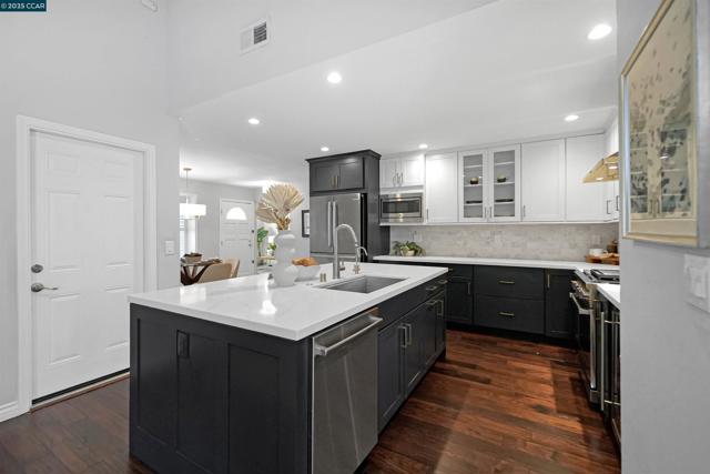 Stunning home in the coveted Town & Country neighborhood of San Ramon. This rare single-level gem sits on a spacious corner lot with RV parking and side entrance—blending modern elegance with the warmth of a close-knit community. Step into a welcoming foyer that opens to a chef’s dream kitchen, featuring premium appliances, expansive stone countertops, and custom finishes. The open-concept expansive family room flows seamlessly into a curated dining area—perfect for festive gatherings. A cozy living room offers a stylish retreat, with the versatility of a den/fourth bedroom, home office, or creative space. The spacious primary suite provides a tranquil escape with an en-suite bath. Secondary bedrooms are generously sized and filled with natural light, offering comfort for every member of the household. Enjoy timeless curb appeal with a meticulously landscaped front yard. The private backyard features mature hardscaping, patios, and a flourishing garden of fruit trees and herbs—ideal for al fresco dining or morning coffee. Conveniently located near top-rated schools, upscale shopping, and fine dining, this exceptional property offers not just a home—but a lifestyle to cherish.