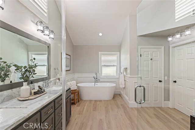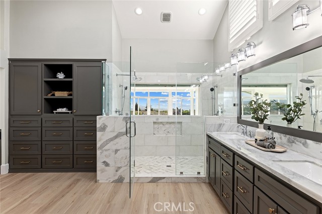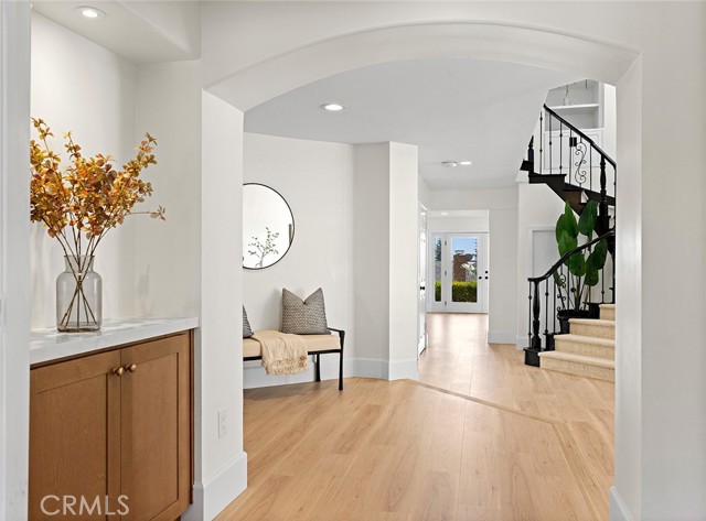 Back on the Market with SIGNIFICANT upgrades. Elevated high in the hills of the prestigious Coast District, this reimagined home captures sweeping ocean views that define San Clemente’s coastal lifestyle—representing one of the best values for an ocean-view home in the area. Set on a wide, flat cul-de-sac the location is exceptional. Crisp curb appeal includes newer exterior paint, a wide brick driveway, and a three-car garage. Inside, a Scandinavian-inspired living room welcomes you with soaring beamed ceilings, a striking wagon-wheel chandelier, new wide-plank flooring, and a wall of French doors flooding the space with natural light. At the heart of the home, the kitchen has been transformed with warm-toned shaker cabinetry, sleek quartz countertops and backsplash, designer pendant lighting, a waterfall island with beverage fridge, and a 6-burner Viking Pro range. The family room centers around a new fireplace featuring fluted porcelain tile framed by black fire glass and opens to a casual breakfast area. Large windows capture ocean views and open to the exterior patio. The formal dining room, outfitted with new cabinetry, countertops, and fixtures, connects easily to both the kitchen and living room for entertaining. Adjacent to the living area, a newly built tile patio offers additional outdoor flexibility—ideal for lounging, recreation, or future customization. Rounding out the main floor is a study, ensuite bedroom with an upgraded bathroom featuring an ADA-compliant shower, an additional powder room, and a custom laundry closet. Upstairs, wide hallways lead to three oversized bedrooms and a spacious bonus room. The primary suite enjoys breathtaking ocean and mountain views, vaulted ceilings with exposed beams, a custom fireplace, and an enclosed sunroom that creates a true sanctuary. A large walk-in closet and upgraded bath complete the suite—featuring a marble shower with dual rainfall heads, frameless glass, and a new freestanding soaking tub. Down the hall, two generous bedrooms share an upgraded Jack-and-Jill bath. The large bonus room with beamed ceilings and a full wet bar offers flexibility for a game room, gym, or additional bedrooms. Additional highlights include 41 fully paid solar panels, EV charging, a new vinyl-and-glass privacy fence with gate, and a whole-house water softener system. A quick drive to the historic downtown, new restaurants, the 2.5-mile beach trail, SC Pier, and San Clemente’s incredible beaches.
