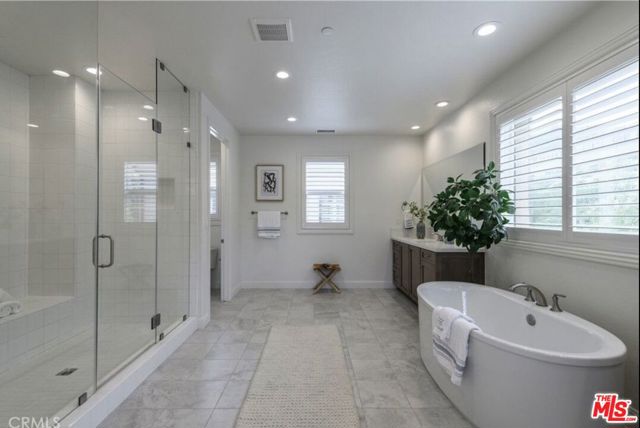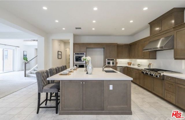 Experience the pinnacle of luxury living in the prestigious, guard-gated Westcliffe community of Porter Ranch, where this stunning Toll Brothers residence awaits. This elegant home sits on a desirable corner lot spanning 10,828 sq. ft., offering ample spaceperfect for adding a luxurious pool or creating your dream outdoor oasis. Boasting 5,513 sq. ft. of living space, this residence exudes sophistication and timeless style. The impressive layout features 5 bedrooms and 5.5 bathrooms, each with its own en-suite. A convenient main-level suite serves perfectly as a guest room, home office, or in-law retreat.The gourmet kitchen is a chef's dream, featuring a large center island, abundant counter space, and a spacious walk-in pantry. Designer-selected chandeliers bring warmth and elegance throughout the home, creating an inviting ambiance. A dramatic curved staircase leads to the upper-level living area and three additional en-suite bedrooms. The primary suite is a private sanctuary, complete with a cozy lounge area bathed in natural light from expansive windows, a custom walk-in closet with built-in shelving, and a spa-inspired bathroom with a soaking tub and an oversized walk-in shower with seating. Every detail of this remarkable home reflects the perfect blend of comfort, sophistication, and contemporary luxuryall set on a prime corner lot with exceptional potential for outdoor entertainment and relaxation.