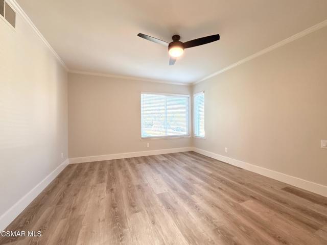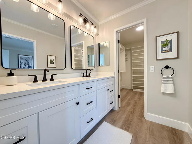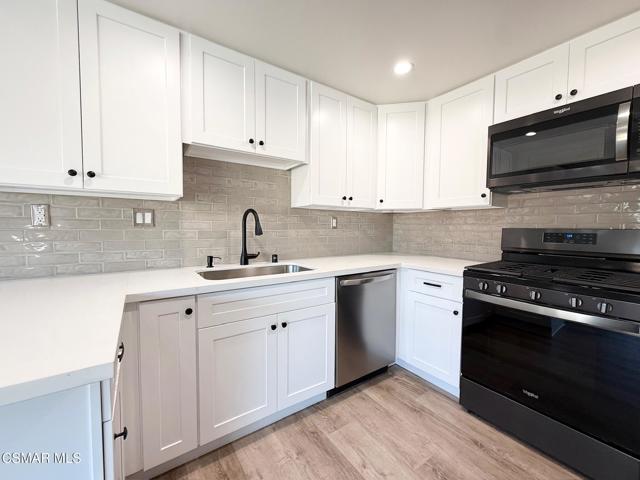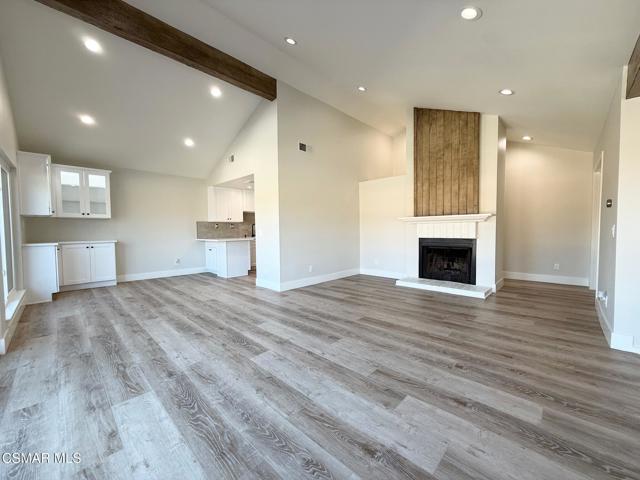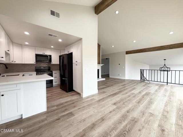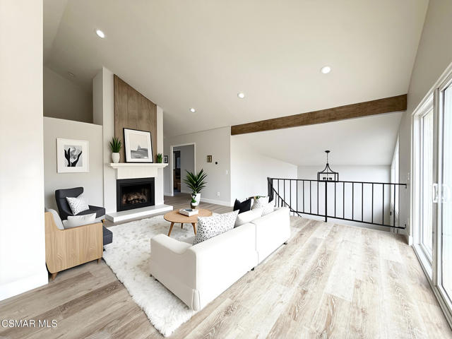 An amazing opportunity to own this completely remodeled Oak Park gem nestled in the serene Country Vista community. Step inside through the oversized attached two-car garage and ascend the grand staircase where all living spaces rest on one main level. The double-door primary suite features a beautifully remodeled bathroom with a large walk-in closet, offering both style and functionality. Down the hall, a spacious guest bedroom opens directly to the private back patio and is served by a full, tastefully updated guest bathroom. A generous hallway linen closet adds extra convenience. The inviting great room is framed by exposed wood-beam accents and centered around a striking floor-to-ceiling brick and wood fireplace, creating a warm and timeless atmosphere. The remodeled kitchen showcases shaker-style stacked cabinets, classic subway tile backsplash, and ample storage and counter space. The charming breakfast nook includes additional cabinetry and countertop area, perfect for extra prep space or a stylish coffee bar. Expansive sliding glass doors lead to a private balcony overlooking the trees and mountains, bringing in natural light and a true sense of tranquility. Throughout the home you'll find newer vinyl windows and sliders, wood-like flooring, recessed lighting, and numerous thoughtful upgrades that make this home truly move-in ready. Enjoy the community pool, spa, and BBQ area, as well as nearby parks and scenic hiking trails. Tucked away among the trees and natural surroundings, this property perfectly blends modern comfort with peaceful, hillside living - a truly serene place to call home