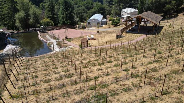 Welcome to Lizard Ranch! A once in a lifetime dream 44 acre property in the Soquel mountains where you can let your imagination run wild. Featuring a renovated 5 bedroom main house (split between two units), a yurt, 5 Tentrr glamping tents, a greenhouse converted into a spa, and a 1600ft garage/workshop/office. The well-maintained road accesses several more attractions - drive to the top to enjoy unobstructed ocean and greenbelt views in every direction. You'll first see your private pond that's fed by a historical spring that was dug out of the mountain over 100 years ago. Immediately above the pond is an acre vineyard with 3y/o Gamay Noir vines. As you continue up the road, you'll pass a well-producing avocado orchard with over 40 80+ y/o avocado trees + many other varieties of fruit trees. Finally, you'll reach the top to enjoy ocean views where you can see across the Monterey Bay. The road continues across the top of the mountain ridge where the greenbelt views display the beauty of the Santa Cruz Mountains. The property can operate completely off-grid from the solar on the main house which includes a Tesla Powerwall and a 400ft private well. There is far too much to this property to list in one paragraph, this property absolutely needs to be seen to appreciate.