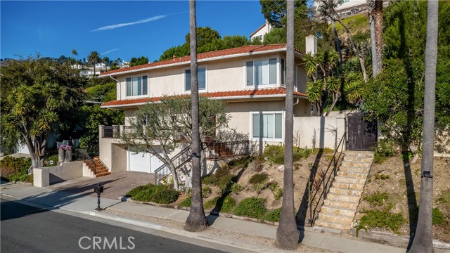Nestled on a quiet cul-de-sac street, this beautifully maintained home offers a perfect blend of elegance, comfort, and stunning ocean and Catalina views. With 2,115 square feet of living space, the residence features 4 bedrooms, including a spacious primary suite, and 2.5 baths. The home boasts soaring 10-foot ceilings, crown moldings, and recessed lighting throughout, creating a bright and airy atmosphere. Recent upgrades include plush new carpeting and stylish laminate flooring. The living room features an inviting gas fireplace and multiple sliding doors that seamlessly connect to indoor and outdoor living spaces, ideal for entertaining and relaxation. The gourmet kitchen showcases dark brown cabinetry, high-end appliances, and a charming breakfast area, perfect for casual dining. Step outside to a large, private side yard with decks designed for outdoor dining, conversation, and unwinding while enjoying breathtaking ocean and Catalina views from the upper level. Additional highlights include a two-car garage with a dedicated storage room (eliminating the need for a bulky storage locker). This exceptional property offers multiple outdoor living options, a spacious lot, and a prime location—making it an ideal coastal retreat.