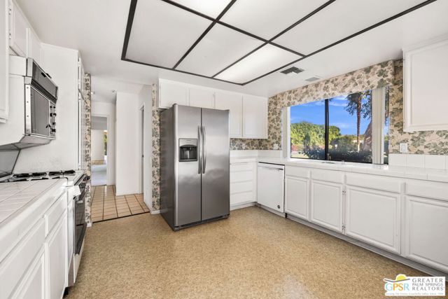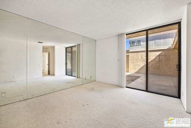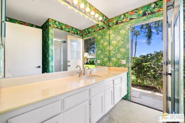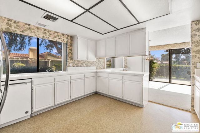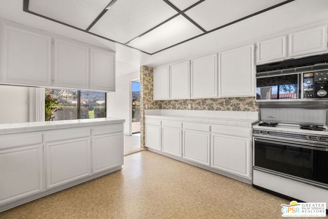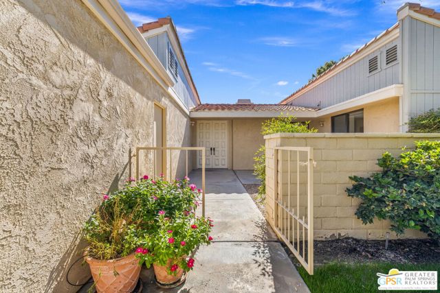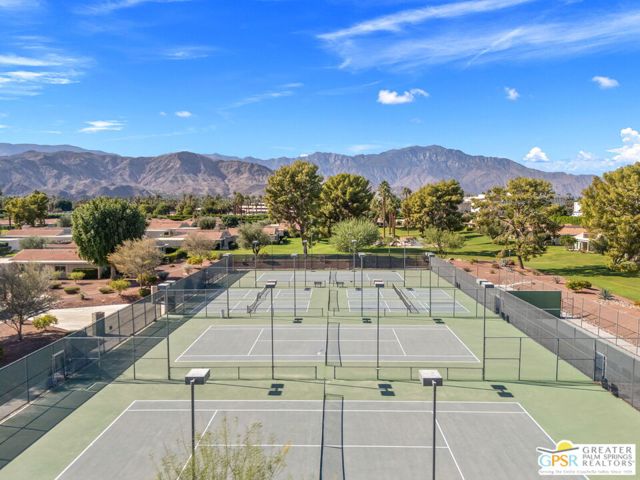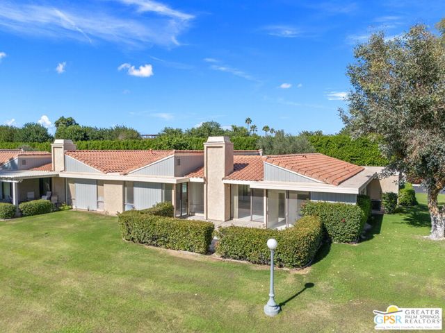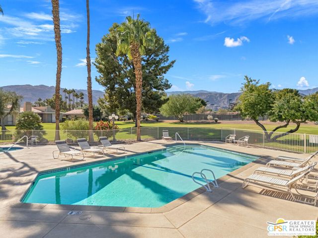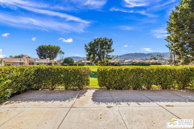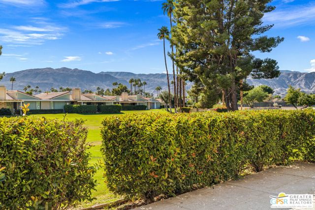 MILLION DOLLAR VIEWS set the stage on Roxbury Drive for this single-level Rancho Mirage home in gated Wilshire Palms. Low-density living, wide-open green spaces, swaying palms, and quiet pools define the community's relaxed elegance. Tennis and pickleball courts add to the appeal, along with easy access to the best of South Rancho Mirage and nearby El Paseo. The living room features a vaulted beamed ceiling, fireplace, and wet bar framed by two patios that invite the outdoors in. The dining room takes in those stunning views, while the large kitchen is light and bright with generous cabinet space. Bedrooms enjoy excellent separation, including a spacious ensuite primary with two closets, separate tub and shower, and mountain views here as well. Guest Bedroom Two opens to the front courtyard, while Guest Bedroom Three opens to the side yard with an adjacent full bathan ideal "mother-in-law suite" setup. A community-wide exterior improvement project on the homes was recently completed and paid in full, a major benefit for new owners. Bring your vision and add your special touch to make this one shine. On Fee Land (you own it) with relatively low HOA fees.