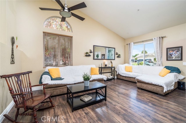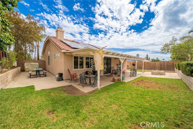 Welcome to this well-maintained home located in the desirable Las Colinas neighborhood of Rialto. This property offers modern upgrades, energy efficiency, and plenty of space both indoors and out. The home features solar that is only 2 years old with 27 panels, 3 backup batteries, and a newly installed electrical panel, ensuring peace of mind and lower utility costs. Seller will be paying off solar. Inside, you’ll find newer wood laminate flooring throughout the main living areas and tile in the kitchen and bathrooms. You will first enter into the spacious living room, then flow into the open kitchen and family room, currently used as a formal dining area with a cozy gas fireplace. The kitchen boasts granite countertops, brand new stainless steel appliances, a breakfast bar, a dining nook, and sliding glass doors leading to the backyard. The primary suite offers backyard access as well, and an ensuite bathroom with dual sinks, a tub/shower combo, and a skylight for natural light. Three additional guest bedrooms and a full guest bath with a tub/shower combo provide ample space for family or visitors. Additional highlights include indoor laundry and a 3-car garage. The backyard is built for entertaining, with a long covered patio, firepit, double-sided gate entrance on side yard, and abundant space to gather. You’ll also enjoy a guava tree, herb garden, and medicinal plants. Recent upgrades within the last 2 years include: new windows, sliding glass doors, screens, kitchen appliances, laminate flooring, HVAC system with ducting, water heater, solar system, and electrical panel. This home blends comfort, efficiency, and style in one of Rialto’s most sought-after communities.