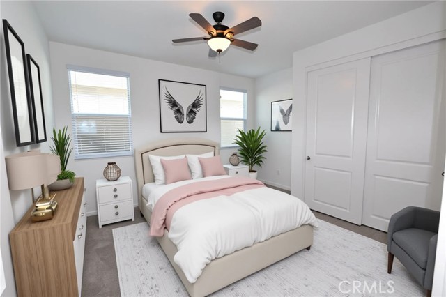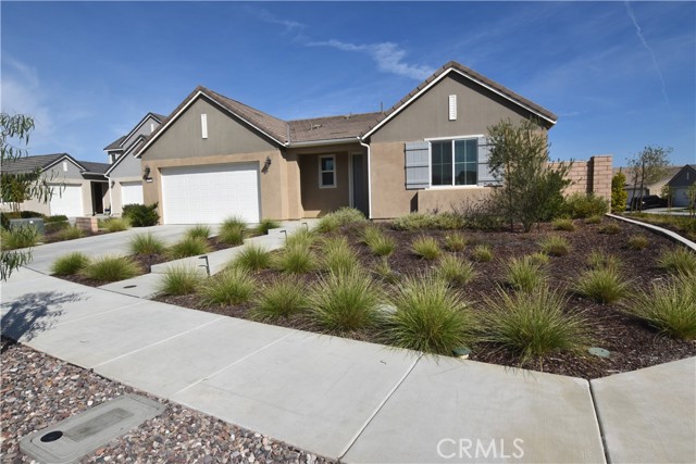 Turnkey home located on a cul-de-sac in the highly desireable, gated 55+ Community of Somersbend with paid for solar and a huge fully landscaped low-maintenance yard. The home features a great room a family room and dining area which flow seamlessly into the kitchen as well as 3 bedrooms and 2.5 bathrooms and a huge alumnawood patio with fireplace and multiple fans. The kitchen is a chef’s delight with a large quartz center island and a walk-in pantry and Stainless steel appliances including a fridge. The master suite features a generously sized walk-in closet and a spa-like bathroom with an oversized walk-in shower as well as a linen closet. Two additional bedrooms and a full bath provide comfortable space for guests or a home office. The laundry room has a sink as well as plenty of additional storage space as well as a counter for folding clothes. The backyard retreat with an extensive aluminum patio cover featuring an outdoor gas fireplace and fans also features low-maintenance landscaping with artificial turf and concrete walkways. There is also a convenient storage shed. Esplanade has exclusive resort-style amenities, including a clubhouse, pool, fitness center, and more. All this, just minutes from Temecula Wine Country, shopping, and dining. This home perfectly blends comfort, convenience, and community.