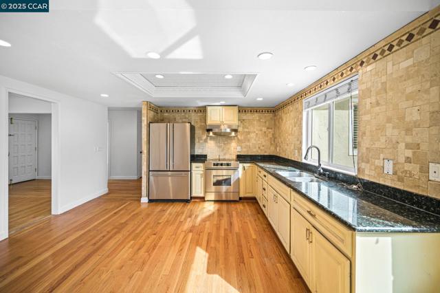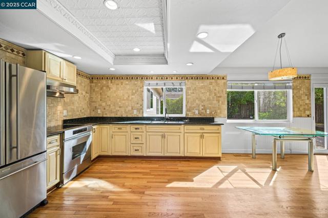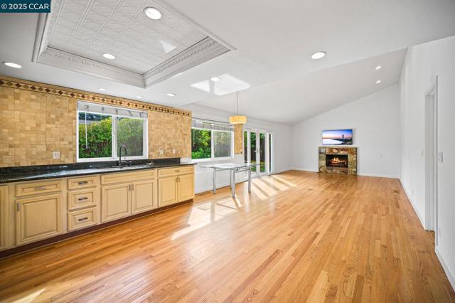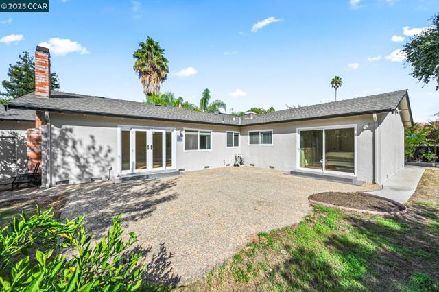 Welcome to this beautifully updated one-story home in one of Walnut Creekâs most desirable Carriage Square neighborhood. Perfectly situated on a quiet court within walking distance to De La Salle and Carondelet High Schools, close to Bancroft elementary, BART, Treat Blvd, shopping, and parks, this home combines comfort, convenience, and charm. Featuring 4 spacious bedrooms and 2 full bathrooms, this residence offers a bright open floor plan, vaulted ceilings, and genuine hardwood floors throughout - no interior steps at all! Central A/C and heating, dual-pane windows, recessed lighting. The Primary Suite includes private patio access and an oversized tiled bathroom filled with natural light from multiple windows. The oversized 3-car attached garage provides extra storage with built-in cabinets. The kitchen flows seamlessly into the family room, where French doors open to a private backyard with mature fruit trees. A paved patio creates the perfect setting for outdoor entertaining or relaxing in your own serene retreat. Recent updates include new interior and exterior paint. Clean inspections! With its ideal location, functional layout, and inviting outdoor spaces, this home truly offers the best of Walnut Creek living! *Some photos are virtually staged*