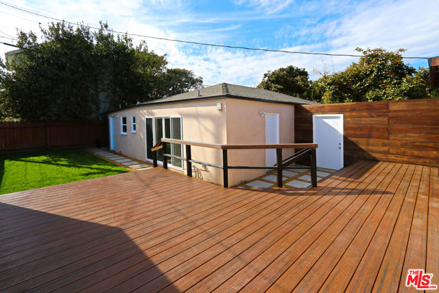 Welcome to this charming 3-bedroom, 2.5-bath single-family home on a generous 6,000 sq ft lot in the heart of West LA. Thoughtfully updated in 2017, this home blends traditional comfort with modern touches and an open, functional layout. Inside, a spacious living room with hardwood floors and a cozy fireplace flows into an oversized kitchen and dining area, perfect for entertaining or relaxed everyday living. The kitchen features stainless steel appliances, granite countertops, wine fridge, and ample cabinet space. Each bedroom offers generous closets and ceiling fans, while the primary suite includes a private ensuite bath. Additional highlights include central air conditioning and a detached two-car garage with an attached bonus suite, complete with its own entrance, kitchenette, and half bath. Ideal for a home office, studio, or guest space. Enjoy California outdoor living on the expansive deck overlooking a private grassy yard, perfect for dining al fresco or unwinding under the string lights. The long driveway offers parking for up to three additional cars. Located on a quiet residential street just half a block from the Metro Expo Sepulveda Station and minutes from Sawtelle Japantown, major freeways, and Westside shopping and dining.