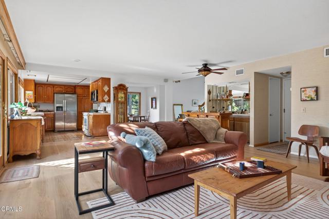 Move right in or make it your own, this spacious two-story Ventura home offers comfort, light, and a fantastic floor plan. Lovingly cared for by the same owners since the 1980s, this well-maintained 3-bedroom, 3-bath home features over 2,000 square feet of inviting living space. The formal living room welcomes you with vaulted ceilings, large picture windows, and a cozy fireplace. Step down to the open dining and family rooms, perfect for gatherings, where sliding glass doors lead to a private backyard framed by mature landscaping and fruit trees including a large avocado. The kitchen enjoys a bright garden view and connects easily to the dining and family areas, creating a natural flow for everyday living. Upstairs are three comfortable bedrooms, including a spacious primary suite with a sitting area, walk-in closet, and en suite bath with dual sinks. Additional highlights include a full bath on the main level, central heating and air, a two-car attached garage with a covered workspace, and a privately fenced front yard surrounded by mature hedges. Set on a corner lot in one of Ventura's favorite east-end neighborhoods, this home offers warmth, light, and a true sense of home with easy access to great schools, parks, and Ventura's sunny east-side climate.