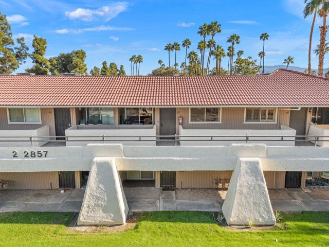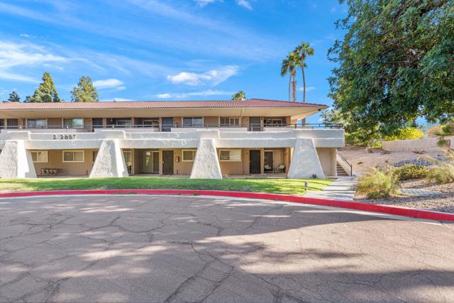 Modern Palm Springs Condo with Wabi-Sabi & Japanese-Inspired Design | Fully Remodeled & Turnkey Furnished.Experience a new level of desert living in this fully remodeled and turnkey furnished 1-bedroom, 1-bath residence, blending modern design with Wabi-Sabi and Japanese-inspired touches. Thoughtfully curated and designed by a well-known local designer, every element of this home embodies balance, calm, and effortless sophistication--a true place of zen.This bright second-floor unit is filled with natural light and showcases 180-degree mountain views, perfect for enjoying breathtaking sunsets from your private patio. Inside, the open-concept living area features a striking fireplace accent wall with a built-in 50' smart TV, creating a beautiful and functional focal point.The custom-built furniture was crafted to complement the natural wood floors, unifying the space with organic textures and warm tones. The sleek kitchen features designer finishes, under-cabinet lighting, and a rare in-unit washer/dryer combo for ultimate convenience. The spa-inspired bathroom includes a smart toilet and premium fixtures, completing the home's tranquil retreat-like ambiance.Located in the resort-style gated community of Palm Springs Villas I, residents enjoy multiple pools and spas, tennis courts, and meticulously maintained grounds framed by palm trees and mountain vistas.Additional highlights include low HOA dues and ownership on fee land (you own the land)--a valuable advantage in Palm Springs.Just minutes from downtown, you're close to world-class dining, nightlife, shopping, golf, and the Palm Springs Aerial Tramway. Whether as a full-time residence, weekend escape, or income property, this home perfectly captures the essence of modern desert living.Welcome to 2857 N Los Felices Rd #203--where refined design meets mindful Palm Springs style.