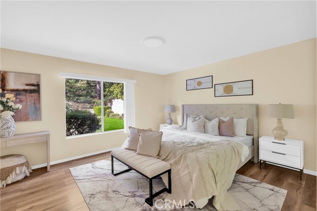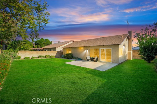 Welcome to this immaculate single-story ranch-style home, nestled in a quiet and highly desirable Walnut neighborhood, perfect for families seeking comfort, warmth, and convenience. This lovely home features 3 bedrooms and 2 bathrooms, designed with an inviting open layout that brings everyone together. The bright kitchen opens to the spacious living area and features a large window and sliding door that fill the space with natural light while offering a beautiful view of the peaceful, green backyard. Easy-care laminate wood flooring flows throughout, creating a cozy and connected feel, providing both comfort and peace of mind. Step outside and enjoy the expansive backyard, where kids can play on the lush lawn and families can gather under the open sky. The garden is filled with colorful flowers, shrubs, and fruit trees—perfect for relaxing weekends or hosting friends and neighbors. The generous back and side yards also offer the potential for a room addition or an ADU, making it ideal for growing families or multi-generational living. The manicured front yard and paved walkways create wonderful curb appeal, welcoming you home each day with pride. Recent updates in past 5 years include a newer AC compressor, roof replacement, water heater, kitchen and bathrooms countertops, kitchen stove, dishwasher, vinyl plank flooring throughout, and sliding door. Located within the award-winning Stanley G. Oswalt Academy (K–8) district and close to parks, supermarkets, the library, and major freeways, this home offers both tranquility and everyday convenience. A truly special place where your family’s memories can grow for years to come—don’t miss this rare opportunity!