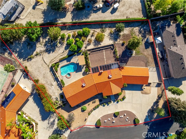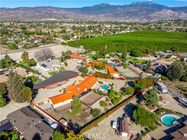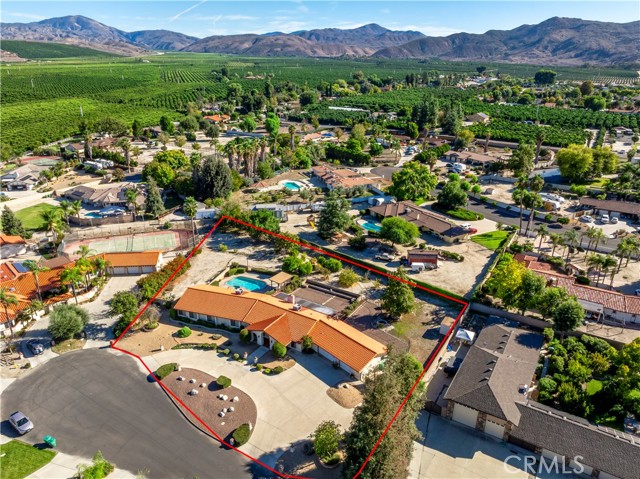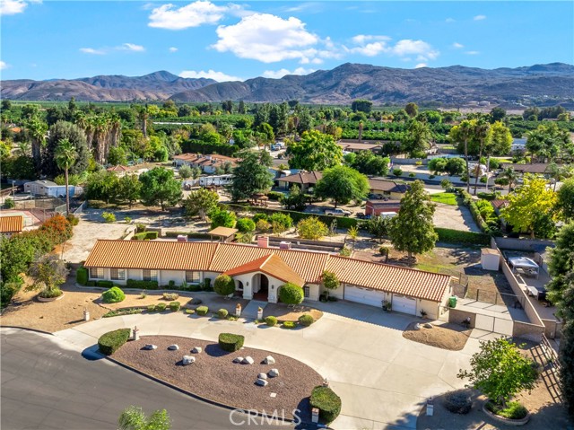 Elegant Custom-Built Pool Estate on a Tranquil Cul-de-Sac Discover timeless sophistication and exceptional craftsmanship in this captivating custom-built pool home, gracefully situated on a serene cul-de-sac and set on nearly one acre of beautifully landscaped grounds. From the moment you arrive, this residence makes a lasting impression with its circular driveway, striking curb appeal, and professionally designed front yard. Step through the inviting foyer and into the grand living and formal dining areas. The living room is generously proportioned for entertaining yet exudes warmth and refined charm. The formal dining room offers the perfect setting for elegant gatherings, featuring crown molding, sun-filled lunette windows, a custom ceiling fan, and a full-length mirrored wall that enhances the room’s sense of space and sophistication. The expansive gourmet kitchen is a culinary masterpiece, showcasing an island cooktop, combination microwave/conventional oven, and abundant custom cabinetry. Designed for convenience, the kitchen is ideally positioned near the third bathroom, laundry room, and three-car garage. Offering approximately 3,225 square feet of living space, this residence features five spacious bedrooms and three beautifully appointed baths. The inviting family room boasts striking wood-beamed ceilings and a stunning Pueblo-style fireplace, creating an atmosphere of casual luxury. The serene primary suite is a true retreat, featuring two king-sized walk-in closets and a spacious bath with dual vanities. The windows flood the space with natural light, creating an airy, tranquil ambiance. The fully finished three-car garage includes an additional side room for extra storage or workspace. Step outside to your private backyard oasis—an entertainer’s dream designed for both relaxation and recreation. The grounds are thoughtfully divided into five distinct areas, including an in-ground pool and spa surrounded by a wrought iron fence and shaded lounging structure. The main backyard is low-maintenance and professionally landscaped, complemented by a spacious RV access area. Beyond the pool, an additional open expanse awaits your creative vision. The rear section of the property features mature shade and fruit trees—an idyllic setting for gardening enthusiasts. This exquisite estate offers more than a home—it offers a lifestyle defined by comfort, privacy, and distinction.