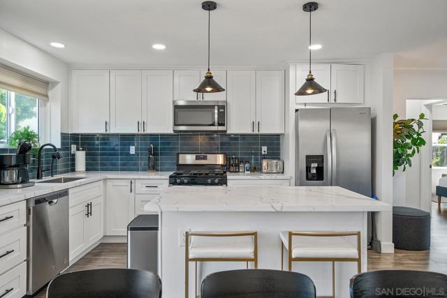 Perched atop a scenic hillside in coveted South Mission Hills, 3109 Hawk Street blends modern comfort with timeless San Diego charm. This fully renovated luxury home offers panoramic canyon views from three expansive patios and a rare mix of tranquility, elegance, and income potential—just minutes from the City's top dining, shopping, and cultural spots. Inside the sun-soaked main residence, a spacious open layout features three bedrooms and two tastefully remodeled bathrooms. The entertainer’s kitchen boasts a large center island, sleek stainless-steel appliances, and premium finishes. French doors lead to three gorgeous levels of outdoor space, including a private spa—perfect for morning coffee or sunset relaxation among the treetops. Downstairs, a stylish loft-style 1-bedroom, 1-bath ADU offers its own private entrance and serene garden patio. Beautifully updated to match in designer quality, it’s perfect for multigenerational living, guest stays, or strong rental income. Both units include contemporary laminate flooring, energy-efficient upgrades, and central HVAC and solar in the main home. Whether you're seeking a luxe canyon retreat, a smart house-hack, or a high-return investment, 3109 Hawk delivers. Your hilltop haven awaits—don’t miss your chance to own a piece of Mission Hills magic.