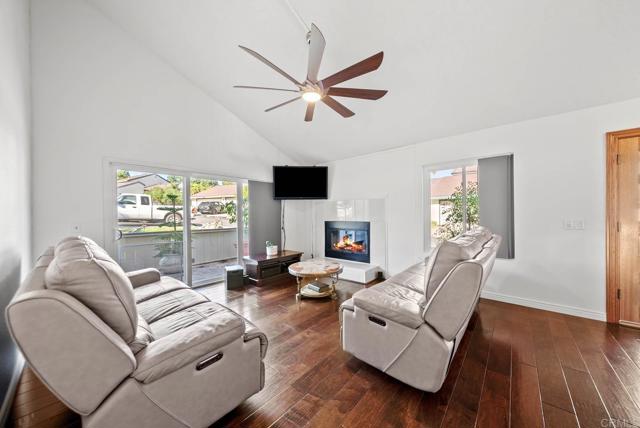 Be the first to preview the largest model in the Vallecito Townhomes community—1,713 sq. ft. and freshly painted. This two-story PUD home lives like a detached property with no neighbors above or below. Vaulted ceilings, a fireplace, and double-pane vinyl windows bring in great natural light. The kitchen features granite countertops and opens to the dining area—ideal for gathering and everyday living. With four bedrooms and two full baths—one being a downstairs bedroom and bath—this layout offers flexibility for guests or multi-generational living. Two private patios add outdoor space, one separating the home from the two-car garage. Beautiful flooring runs throughout the main living areas, with carpet only on the stairs, tile in the bathrooms, and a PPA solar system for energy efficiency. The community pool is directly across from the property, with additional amenities including a spa and BBQ area. Conveniently located near Highway 78, shopping, dining, Cal State San Marcos, and Palomar College.