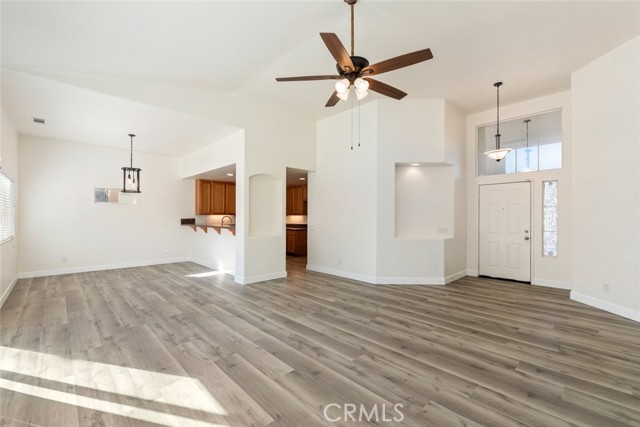 Every inch of this single story residence has been beautifully updated, offering modern style and true move-in readiness. The home welcomes you with fresh curb appeal, new front landscaping, and a lush green lawn. Inside, you’ll find all-new flooring, fresh paint, modern lighting, ceiling fans, and new blinds throughout. The vaulted ceilings in the living room, front room, and primary suite add an open, airy feel. The kitchen is a showpiece with granite countertops, brand-new stainless steel appliances, and elegant finishes. Both bathrooms have been fully upgraded with new quartz counters, sinks, and faucets, creating a sleek, contemporary look. The primary suite features a huge walk-in closet and a relaxing atmosphere you’ll love coming home to. Step outside to an entertainer’s dream backyard with artificial turf, decorative rock, and a spacious open area perfect for gatherings or outdoor enjoyment. Fresh rear landscaping adds to the beauty, and potential RV or boat parking along the side offers convenience and flexibility. This home truly has it all—style, comfort, and exceptional attention to detail inside and out.