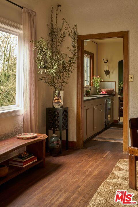Spanish Revival bungalow in Leimert Park filled with original historic details. Approaching the home, you are greeted by an original curved front door and a large arched window that perfectly frames a multi-trunk Sycamore. The living area offers high, coved ceilings, original built-ins, restored hardwood floors, a mission style original decorative fireplace, locally designed brass sconces, and loads of natural light. The original kitchen has plenty of storage space, vintage tile countertops, a cozy breakfast nook with built-ins. The bathroom includes a timeless marble vanity and Zia concrete tile. Both the front and backyard feature California native and regionally appropriate plants including a re-wilding of Deer Grass, Toyon, Sycamore trees, White Sage, Lemonade Berry, Catalina Morning Glory vine, along with a Lemon tree, Bay Laurel, Rosemary, Lavender, Flat-leaf Parsley, Mint, Sorrel, Olive and and and shade trees. The backyard feels like a Mediterranean oasis with pea gravel and areas for dining and lounge chairs, perfect for entertaining and meals outdoors. Foundation has been seismically retrofitted (bolted) with permits. This truly is a special pocket of Los Angeles with some of the nicest neighbors, quiet streets, easy parking, and tree-lined streets for walks. Located a few blocks from South LA Cafe, Fuegos, World Wide Tacos, Leimert Park Plaza, and near all the West Adams hot spots - Highly Likely, Maydan Market, Alta, Johnny Pastrami and many more. Located near the K-Line or E-Line trains, providing accessibility to Downtown, USC / Exposition Park, Culver City, LAX or the beach in Santa Monica.