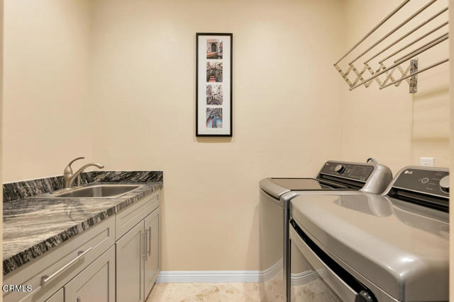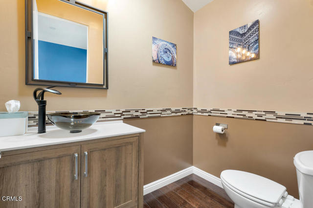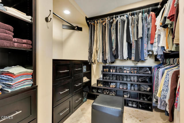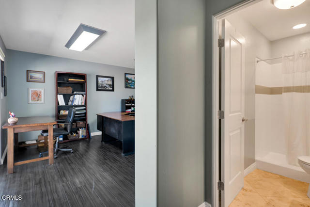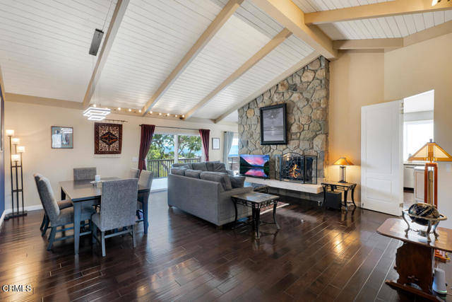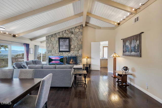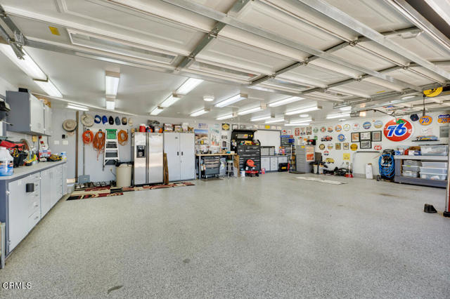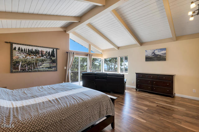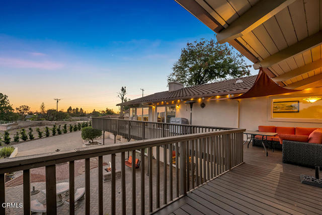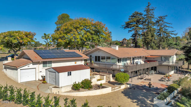 Perched in the prestigious Las Posas Estates, this remarkable hillside residence captures sweeping views of the city, mountains, and ocean--creating an entertainer's paradise in an atmosphere of tranquility and sophistication. Nestled on a quiet cul-de-sac street, this custom-designed home seamlessly blends refined elegance with effortless comfort. The main level features three spacious en-suite bedrooms, with the primary bedroom designed to take advantage of the home's stunning vistas. The gourmet kitchen is a culinary dream, showcasing a commercial-sized refrigerator and freezer, professional-grade gas range, walk-in pantry, granite countertops, and an inviting eat-at counter. Morning light pours through expansive windows, illuminating the open-concept living and dining areas that flow effortlessly to wrap-around decks--ideal for indoor-outdoor entertaining. The primary suite is a serene retreat with vaulted wood beam ceilings and dramatic picture windows framing the breathtaking views. Downstairs, a stylish speakeasy bar with tin ceiling plus bonus room with a dedicated powder room set the stage for memorable gatherings, while sliding glass doors open to a spacious patio complete with a firepit and outdoor lounge. Downstairs also includes a fourth bedroom or office plus a 3/4 bath. Film enthusiasts will enjoy the dedicated media room with cozy, oversized theater seating, a 96' screen, and projector. For car collectors and hobbyists, the property offers exceptional amenities--including a generous three-car garage, separate storage/workroom large enough to accommodate another vehicle, and a large gardening workshop in addition to an outbuilding with car lifts capable of accommodating up to six vehicles and its own solar system. Meticulously maintained and thoughtfully upgraded, the home features high-end amenities such as owned solar, EV charging, whole house back up generator, recirculating hot water, custom blinds, gutter guards, and paver driveways and patios. The circular driveway provides a grand entrance, complemented by space for RV or boat parking. Coming in at just over an acre, the property can accommodate extra cars, toys, and fun. Just minutes from Camarillo's premier golf clubs and conveniently located between Santa Barbara and Los Angeles, this one-of-a-kind estate offers unparalleled privacy, craftsmanship, and comfort--with views that inspire, and spaces that invite you to live beautifully.