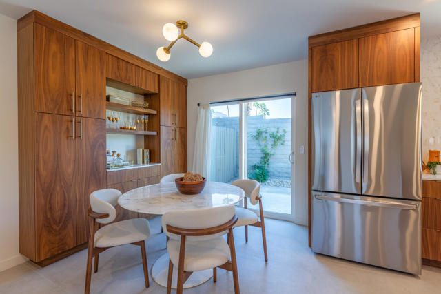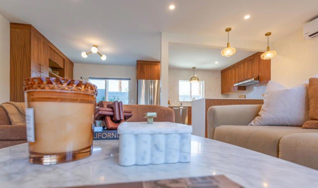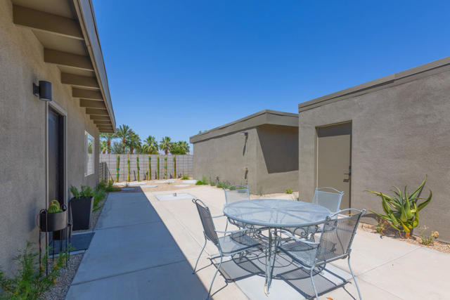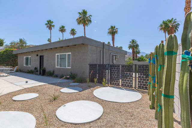 Unique move-in ready opportunity with NO HOA in Rancho Mirage; this charming mid-century detached (no shared walls) duplex property (2/1 and 1/1) with abundant mountain views offers multiple opportunities and flexibility (family compound/primary unit plus casita for guests/caregiver accommodation/in-law suite or an extremely versatile income opportunity - rent separately or live in one and have the other produce income for you). The rear unit (1bed/1 bath) has a beautiful walnut kitchen with smart appliances and white quartz counters, and an oversized primary suite with pretty en-suite bathroom. The front unit (2 bed/1 bath) is also updated - fresh and modern with new flooring, new paint, a new kitchen with quartz counters and smart appliances, and updated bathroom. Both units enjoy private patio space and feature smart lighting, smart climate control and smart entry locks. Both units have laundry facilities inside (space for a full size setup in the rear unit, and for a combi unit in the front unit). This private compound is within walking distance of the River/Magnesia Falls Shopping Center and Rancho las Palmas hotel. Just steps away is Rancho Mirage Park, where you can visit the weekly farmers market, enjoy a whole variety of events at the amphitheater and make good use of the multiple pickleball courts and walking paths.Outside, the property features a new roof, new block wall, new gates, multiple patio areas, creative landscaping and new irrigation connected to a smart irrigation timer. A detached 2 car garage (with an additional large lockable storage closet) has epoxy floors, fresh paint and a WIFI belt-drive door opener with camera. There are two separate gas and power meters and one water meter.