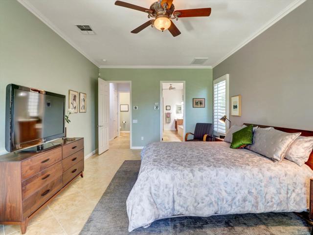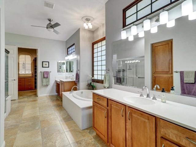 From the moment you enter the private gated courtyard you will see a magnificent stone floored entryway leading to the detached CASITA and beyond to the NEW LEADED GLASS FRONT DOOR entrance to this fabulous home. As you enter the home, you will realize this is not just one of the LARGEST PLANS Sun City has to offer, but a totally upgraded and redesigned living room. Four inch wood shutters, a ceramic tile floor and a walled fireplace showcase your arrival. The wing wall in the living room has been removed allowing a larger than normal living area. All rooms have been color updated and ready to move in. The Master Suite including a shower and tub - private water closet - large walk-in closet with built-ins and completely redecorated is soothing to the eye. This home has a private dining room with a buffet and table seating for eight. The stainless steel kitchen built-ins with windows and doors leading to the beautiful golf course and has a 3 seat sit down bar for party enjoyment. A Butler's Pantry is conveniently located between the kitchen and dining room. On the other wing of the property is a nicely decorated secondary bedroom with its own bath. The laundry room has added cupboards, a washer and dryer and leads out to a three car garage with a split air conditioner and extra storage. A detached CASITA for guests is provided and is usually everyone's favorite area for privacy and rest. It has a sitting area and large bed to make guests comfortable. A wall of windows looks out to the golf course, spool area, built-in BBQ and covered areas and for outdoor pleasure and viewing of the Mountains. The rear yard is south facing with a tremendous MOUNTAIN and GOLF COURSE VIEW. Please come and see this beautiful home - you won't be sorry. Sun City Shadow Hills offers two golf courses, tennis courts, pickle ball courts, 2 Fitness Centers and a Clubhouse with a billiards room, meeting rooms, and a library are provided to homeowners. The Club has a restaurant, bar and other areas for your enjoyment. Come and meet our friendly staff.