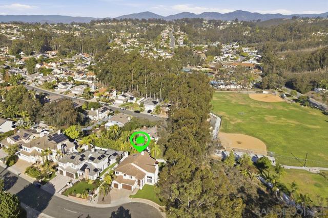 Custom home in the highly desirable community of Hunters Pointe in Scripps Ranch! This is one of 3 custom homes built by the developer. The prime location at the end of a cul-de-sac gives you additional privacy and a large .25-acre lot! The spacious layout features 5 bedrooms and 4.5 baths spread over 3,844 sqft in the main house. The 1-car garage has been converted into a 264 sq ft ADU with its own entrance and full bath. As you enter, you are greeted by abundant natural lights and tall vaulted ceilings in the entry and living room. Downstairs, you will also find a full bedroom with its own private bath, dining room, family room that is open to the kitchen, powder room, and laundry room. Upstairs, the huge primary suite has a fireplace and separate sitting area, a balcony overlooking the park-like settings, and a large bath with a separate tub and dual walk-in closets. There are 3 additional bedrooms upstairs. One bedroom has its own bath, and the other two share a jack-and-jill bath. The spacious backyard backs up to the greenbelt and overlooks the park, giving you a serene and private setting. The front and back yards have turf, making them very low maintenance. This excellent location is a short walk from Jerabek Park, Jerabek Elementary School, and the Scripps Ranch Swim and Racquet Club. Additionally, it's less than a mile from beautiful Lake Miramar, which offers hiking, shopping, dining, and the quintessential California lifestyle. And, no HOA or Mello-Roos! This isn’t a home you want to miss!